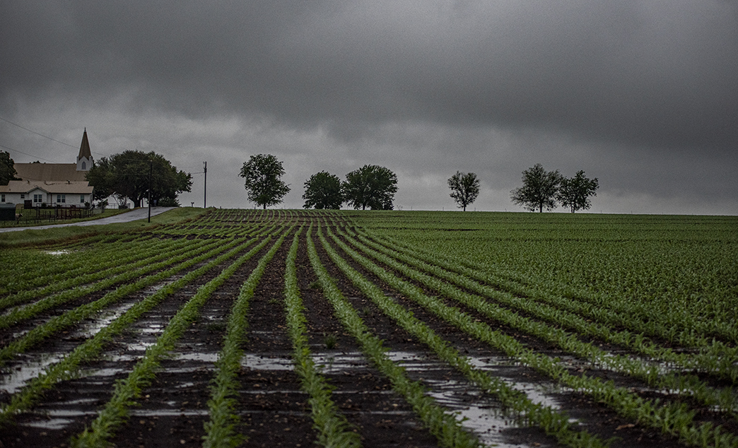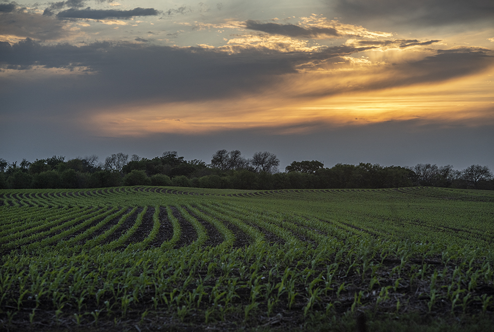 At this time of year I’m keeping a close watch on the growth of crops along the Blackland Prairie. These two photos were taken in East Williamson County this week. The first photo was at the end of a warm and clear day, not far from Bartlett. The other photo was taken tonight on rainy and quite cool (for this area) evening in the Wuthrich Hill area. That’s Prince of Peace Lutheran Church in the distance.
