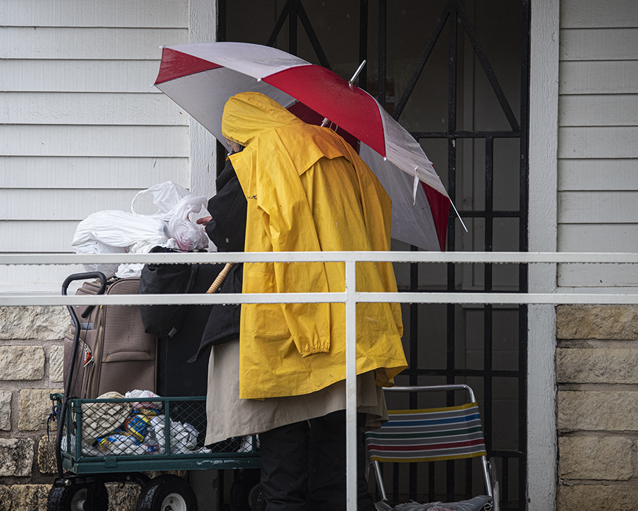 I initially balked at doing this post. It might make people uncomfortable. At times, however, we need the discomfort. When in Georgetown today, taking other photos, I saw this man. I know he is homeless. And that he struggles with demons I don’t understand. It was raining and cold today in Georgetown, unusual for spring in Texas. The pandemic has many sad stories. Georgetown, like many communities around the world, has closed its library. It has closed its public restrooms. For a few years I’ve seen this man sheltering at the public library. Before the restrooms were closed, he had use of it. He’s checking his belongings in front of a closed restroom here. Don’t get me wrong. I understand the reasoning behind the closures, but then those like this gentleman end up falling through the cracks. No answers here, friends. It’s doggone sad.