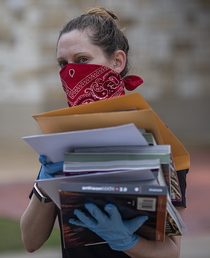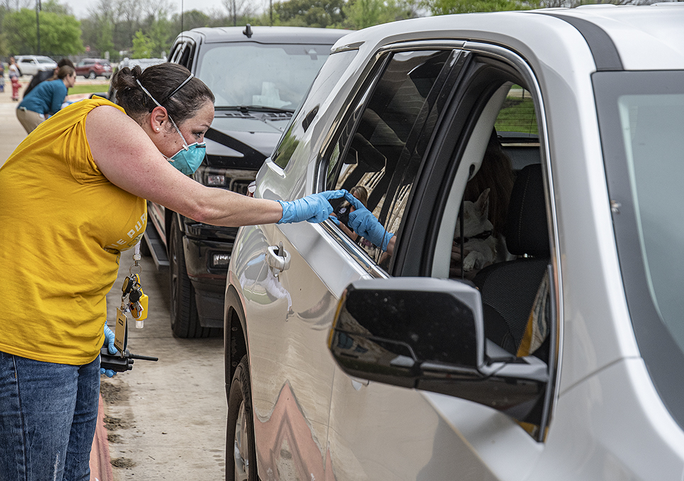 COVID-19 dominates our lives, but common humanity needs to remain intact. In Georgetown, Texas, the city’s public school system has for years offered breakfast and lunch meals to underserved children. Then this dreadful virus comes along and Georgetown I.S.D., like most systems around the country, has halted classes. It’s the right thing to do. Feeding children is right, too. That’s why I was glad to be at Annie Purl Elementary School, where kids were being served hot breakfasts and lunches via drive-through or walk-up. The school’s principal, Denisse Baldwin (the lady in the yellow t-shirt) was joined by a large group of helpers from within the school system. Not only were they providing food, but also learning resources (think books) for kids and parents to study while at home. The helpers had to first have their temperatures taken by a school nurse before being allowed to assist. Today, Purl served 217 breakfasts and 465 lunches. They’ll do this every weekday until classes resume. Two other district schools are doing the same. With Ms. Baldwin’s permission, note that she has faced cancer two times. The mask and gloves protect her immune system. All school districts need this kind of compassion. When Baldwin reached out to touch the window to communicate with one of her kids, I knew she had the right job. That’s heart, folks.