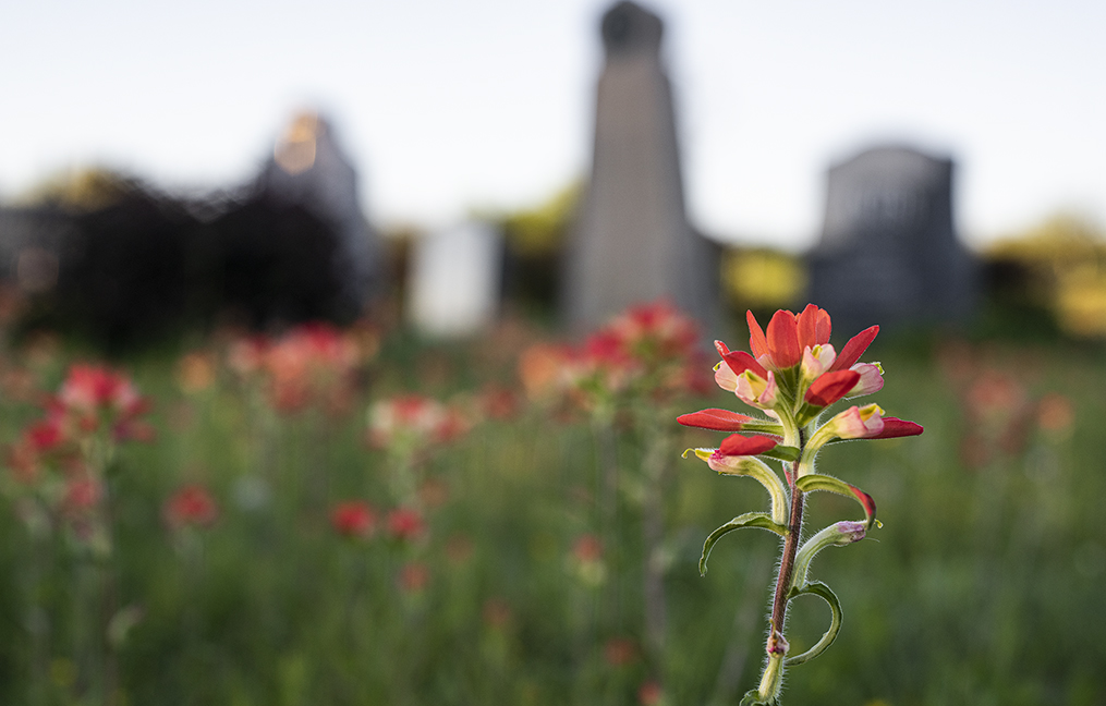 Our Lady of the Rosary Cemetery and Prayer Gardens, in Georgetown, Texas, is a place I go from time to time to take away a little of life’s stresses, at least for a while. Although it’s close to a major toll road, once you’re there, you forget about its presence. My first visit there was probably 9-10 years ago, when the Austin American-Statesman did a story about it. At the time it was one of only two green burial grounds in Texas. A “green” burial is quite natural, no embalming. Today they offer traditional burials and cremations, too. All that aside, it’s just a relaxing and beautiful place. Spring’s arrival brings wildflowers. On my recent visit this week, Texas Bluebonnets and Texas Paintbrush were abundant. A trail leads to a little pond. Standing on the observation deck, if you look closely you occasionally see a passing car on the toll road, but somehow you don’t seem to care. It’s a healing place. Some of us need that.
