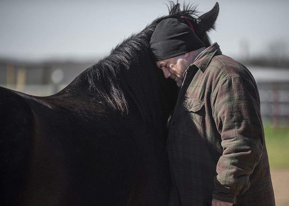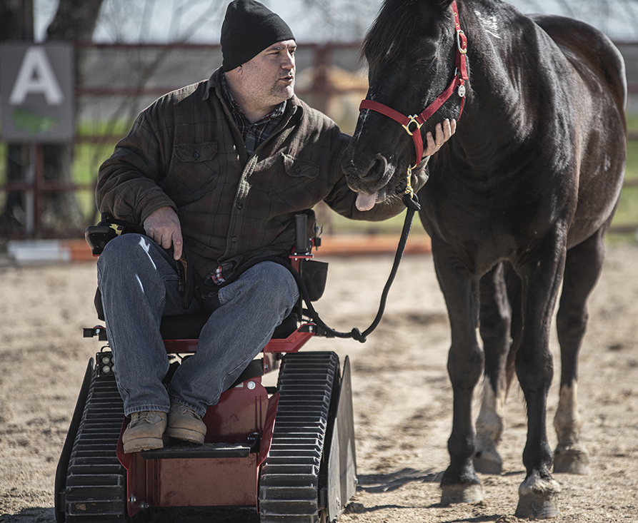 The veterans’ program at Georgetown’s Ride On Center for Kids (R.O.C.K.) has been a part of Todd’s life for five years. Under the guidance of program director Heidi Derning, he takes part in Therapeutic Horsemanship sessions every week. On a recent visit, he worked with Mooch, a 15-year-old mustang. Watching Todd work with Mooch, I can see that he is a “whisperer.” He knows how to “gentle” his four-legged friend. Before R.O.C.K., Todd explains, he used to have difficulty dealing with anger. While there are still hard times, his time at R.O.C.K. has done wonders.