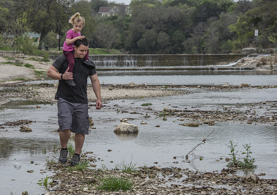 The coronavirus is dominating everything. Many events throughout the world have been either cancelled or postponed. Grocery stores have been hammered with panic buying. Thankfully, that is improving. On Saturday, I did find activity to document. Blue Hole Lagoon, in Georgetown, was supposed to be the site of a volunteer cleanup, but it didn’t happen. I did, however, find some folks enjoying its beauty. A couple blocks south, the Georgetown square hosted their monthly Market Days. There I met Ella, an 11-year-old Pembrook Welsh Corgi, and Aandi, a curly-headed 4-year-old enjoying his day. My Saturday concluded on a cloudy evening at Prince of Peace Lutheran Church in Wuthrich Hill. I never grow weary of its presence.
