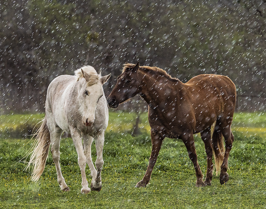 It’s not uncommon here on the Blackland Prairie to experience a sudden rain shower, often coming, and leaving, without fanfare. That was the case last evening as I happened by two horses a little north of Granger, Texas. The entire burst lasted maybe three minutes. These beauties seemed to enjoy a dash of cool on an otherwise warm night.