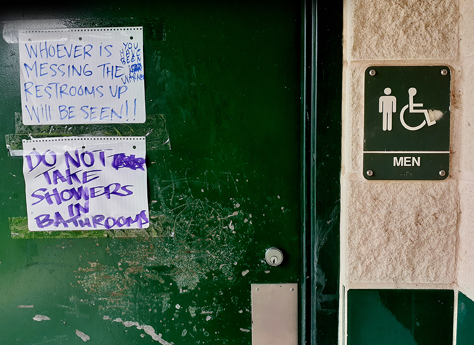 During my daily walks in Taylor, I take 2 or 3 restroom breaks along the way. One of the stops is at Murphy Park. This morning these signs were tacked onto the door. I don’t know who left the signs there, but do find their lack of empathy disheartening. Our little town has a homeless population. For most, the only recourse they have for getting street grime cleaned off are in public restrooms. Granted, I’ve seen discarded clothes and paper towels scattered about on my stops, but this type of signage is off the mark. This was just one of my cell phone snaps.