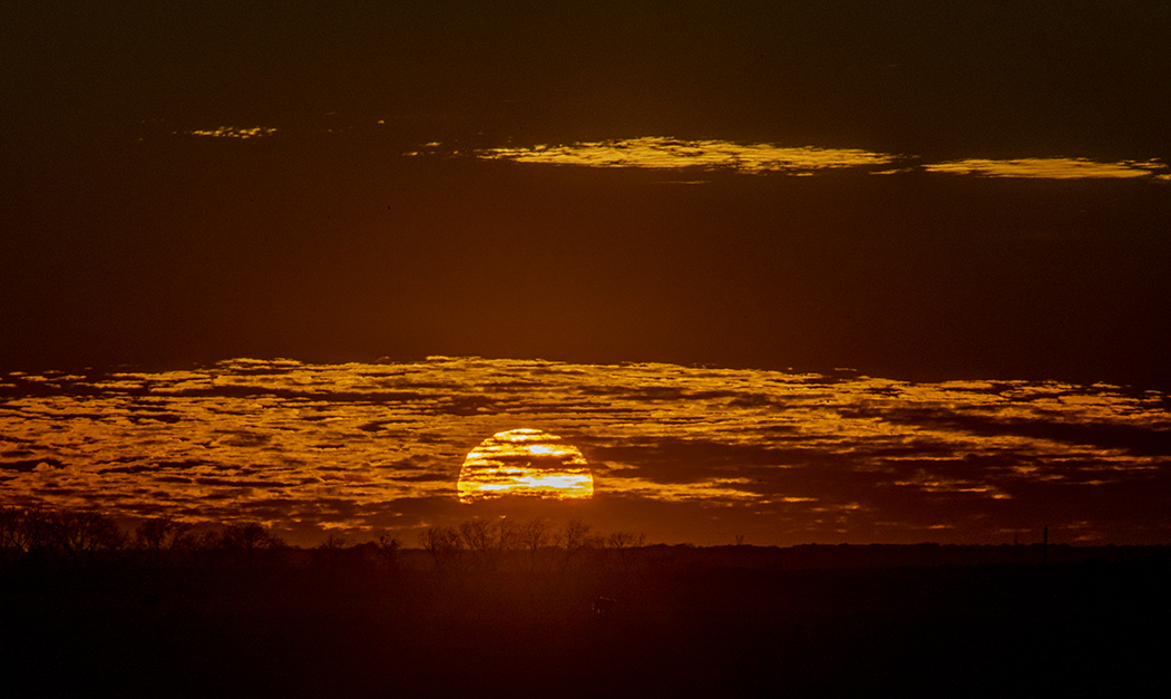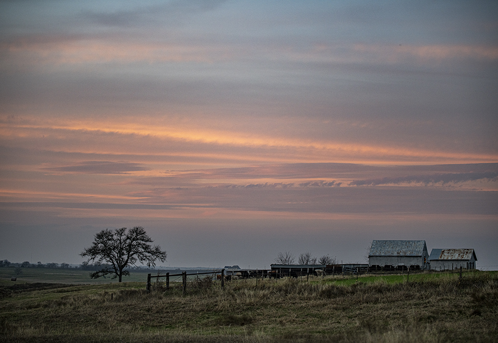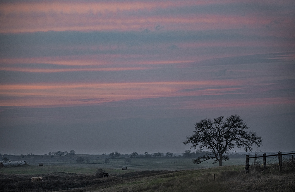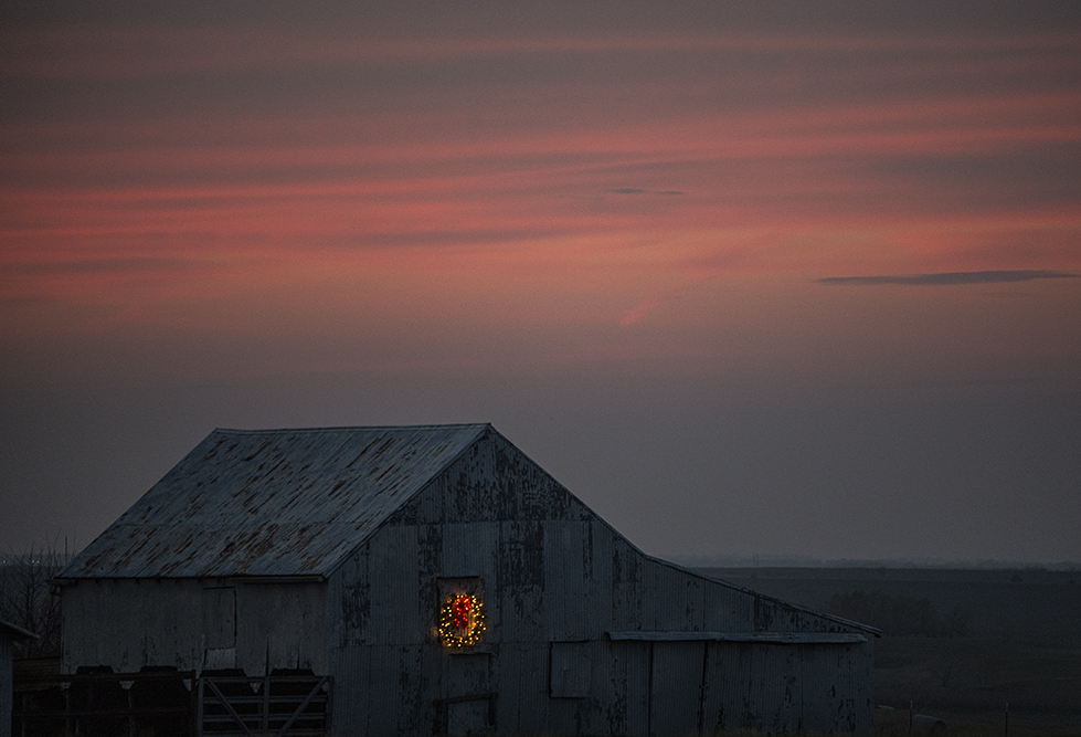 As the year nears its final hours, I offer what may be familiar scene. This area around Beyersville, in southeast Williamson County, remains pristine. I travel through here when a respite from unchecked growth is needed. For now, this field surrounding Mager Cemetery is as serene as it gets. I can sit in the cemetery for several minutes without seeing a car pass by. This post opens with a wider view, for perspective. Inevitable growth is coming, but let’s cherish what’s here for now. The Blackland Prairie is still with us. As I was leaving here last evening, the wreath on the barn I photographed last week was glowing, a fine end to the evening.