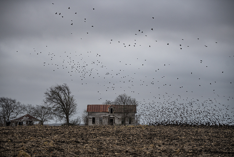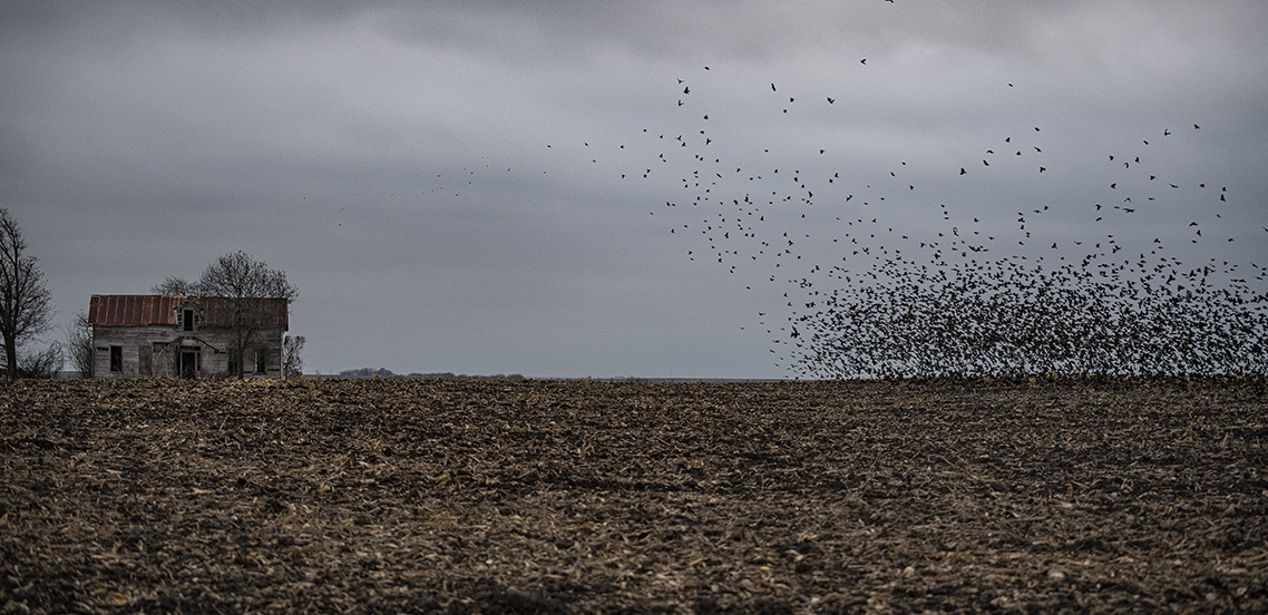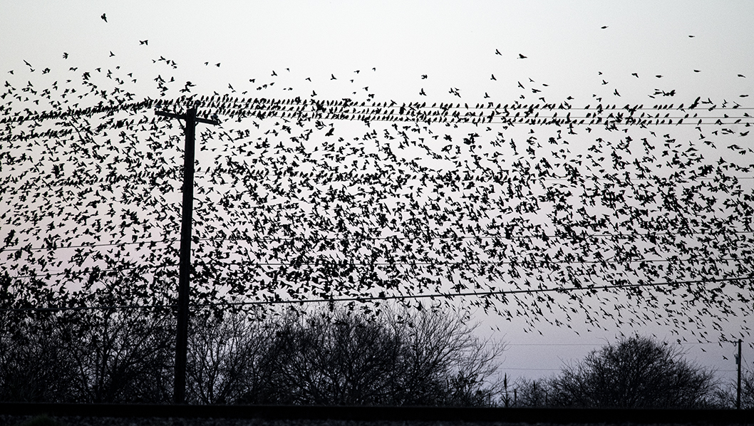 Although I’d seen large flocks of birds flying in mass, it was only when a friend told me it was called murmuration. From what I’ve come to understand, it’s most commonly associated with starlings, but grackles will also take part in these aerial ballets. Starlings usually have pinkish legs and yellow bills, while grackles have black legs and black bills. I think the birds in these photos are grackles, one of the most predominant birds in Texas. At any rate, I find it mesmerizing to watch them in action. The photos with the abandoned farmhouse are from this week, the others from a few evenings back.