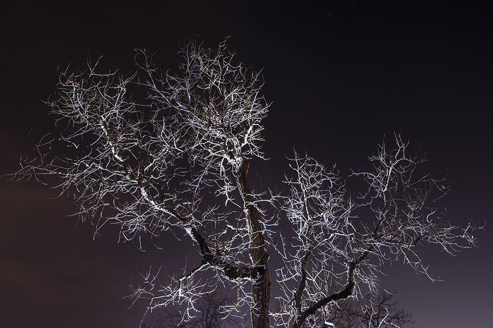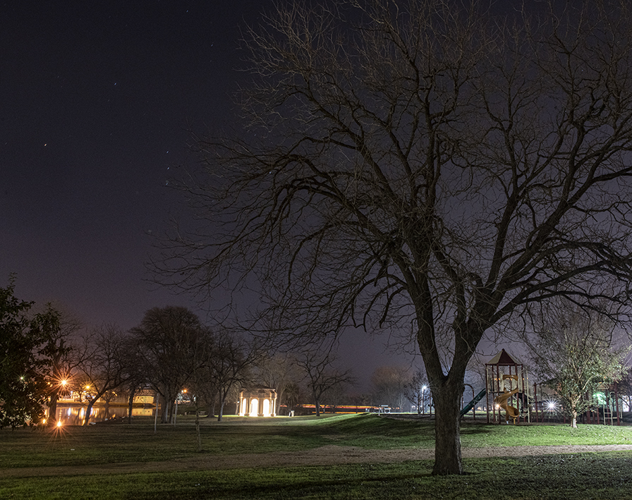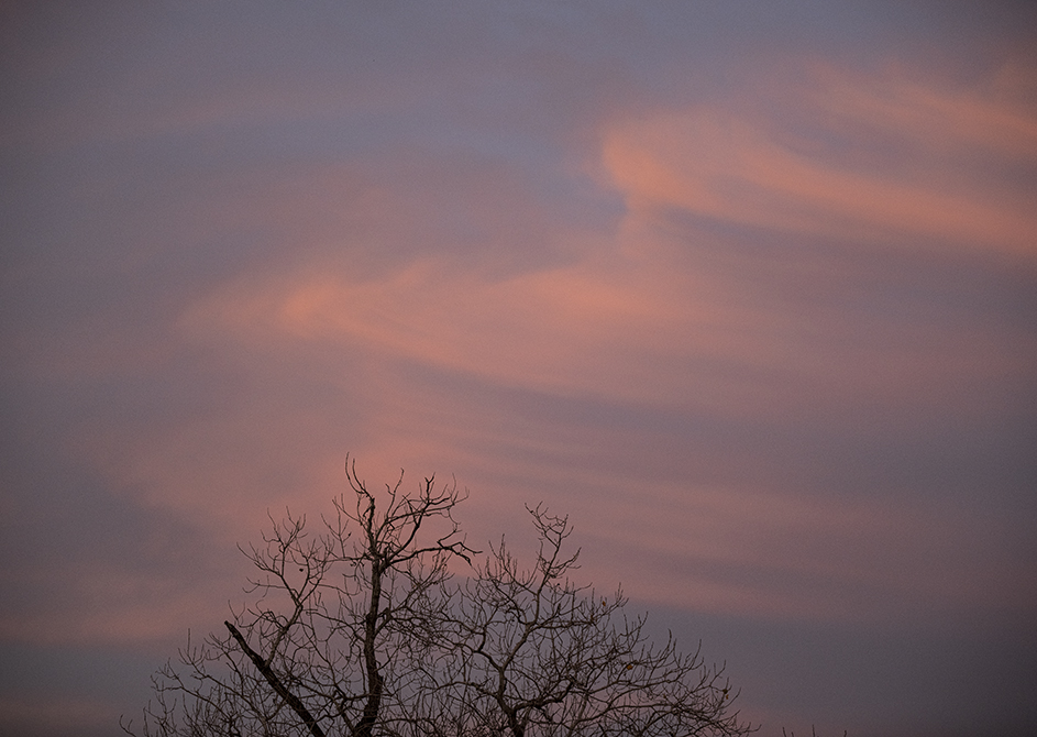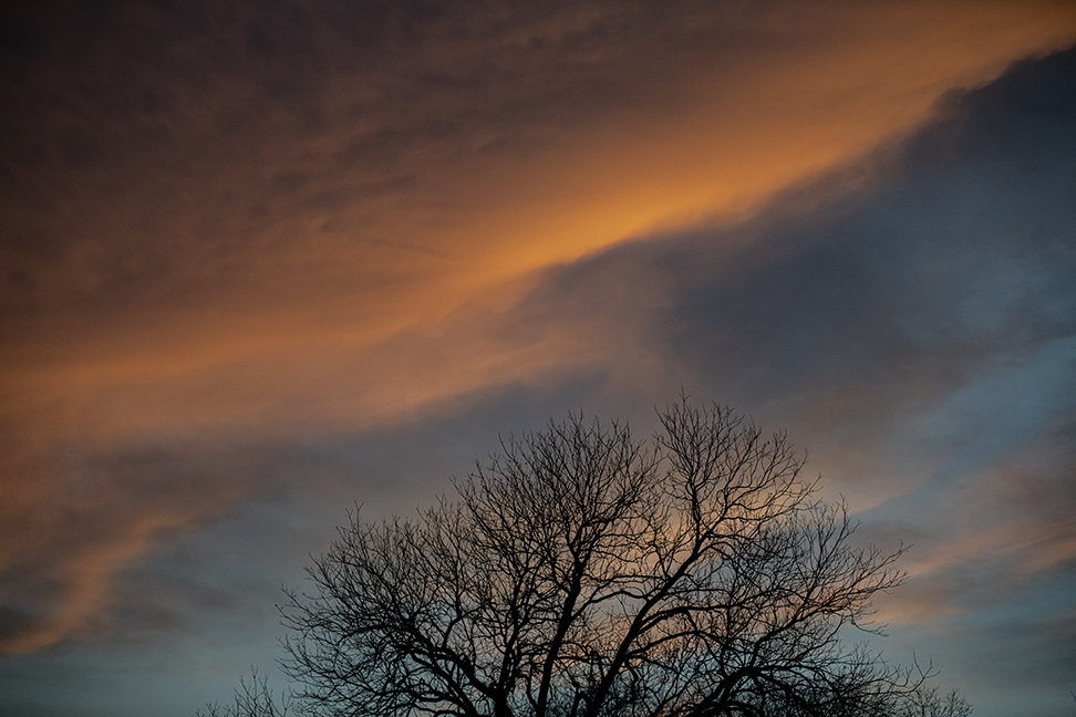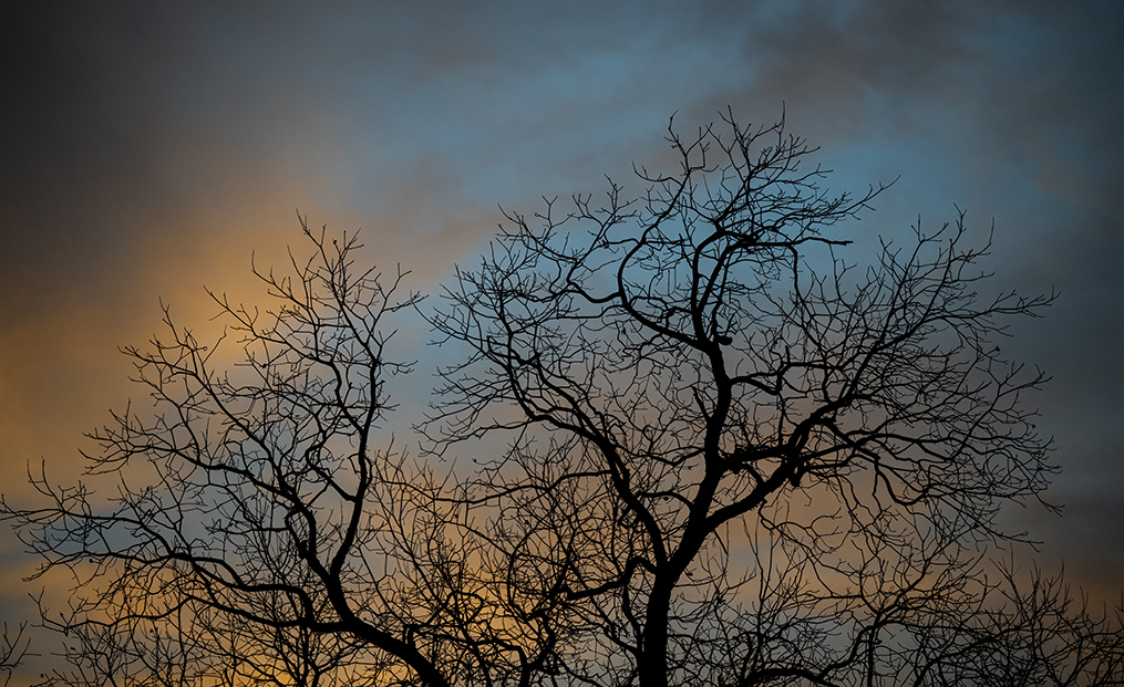 While autumn color is very nice, I have to admit an affection for trees when their leaves fall away, leaving behind their exquisite skeletal personas. These are photos taken last evening at Taylor’s Murphy Park, watching day become night.