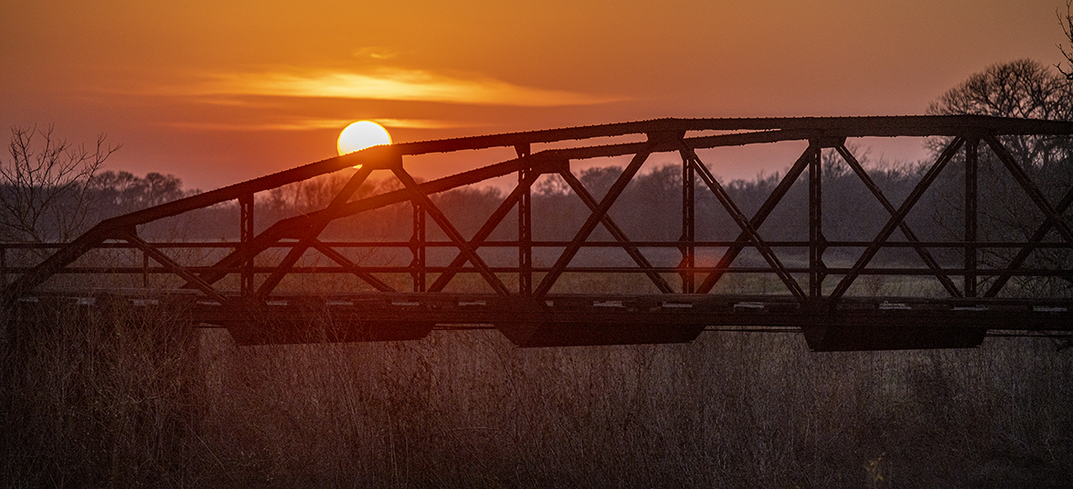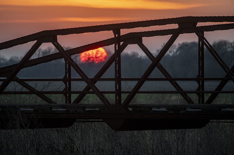 I have an affection for old bridges, whether or not they’re operational. A few years ago, I met a gentleman who mentioned a long-retired truss bridge in the Noack area. It rests in a field just beyond the county road, replaced by a more modern conveyance. While I’d love to tromp through the brush to check it out, there’s a No Trespassing sign on the property. I respect those signs. It’s been hard to photograph it from the road, but Sunday evening the sun began to go down right behind it. If any folks living in that area know the owner of the land, please let them know my interest. There’s a truss bridge, also retired, along County Road 366 in Taylor I’ve photographed quite a few times. Through the years, folks visiting the bridge have shown little respect for its history, spray painting it with all sorts of graffiti. I can sure understand the desire to protect the bridge in Noack.