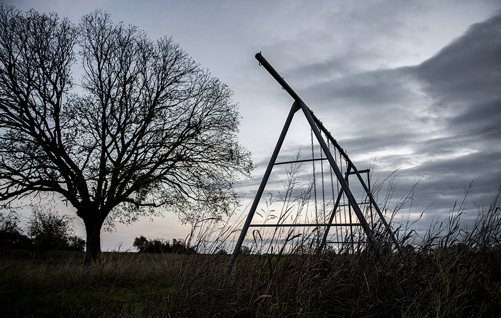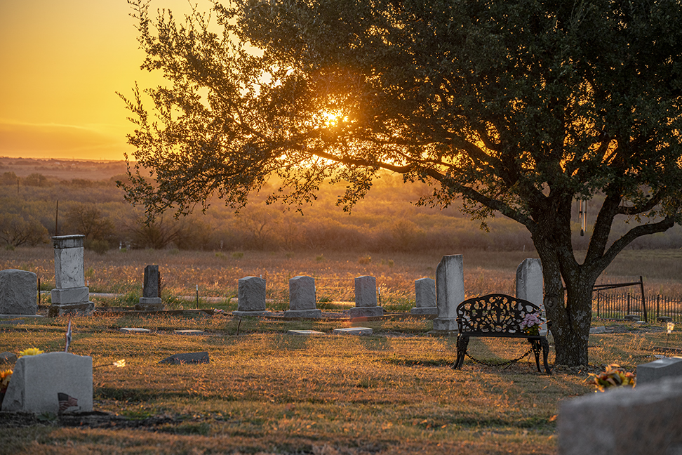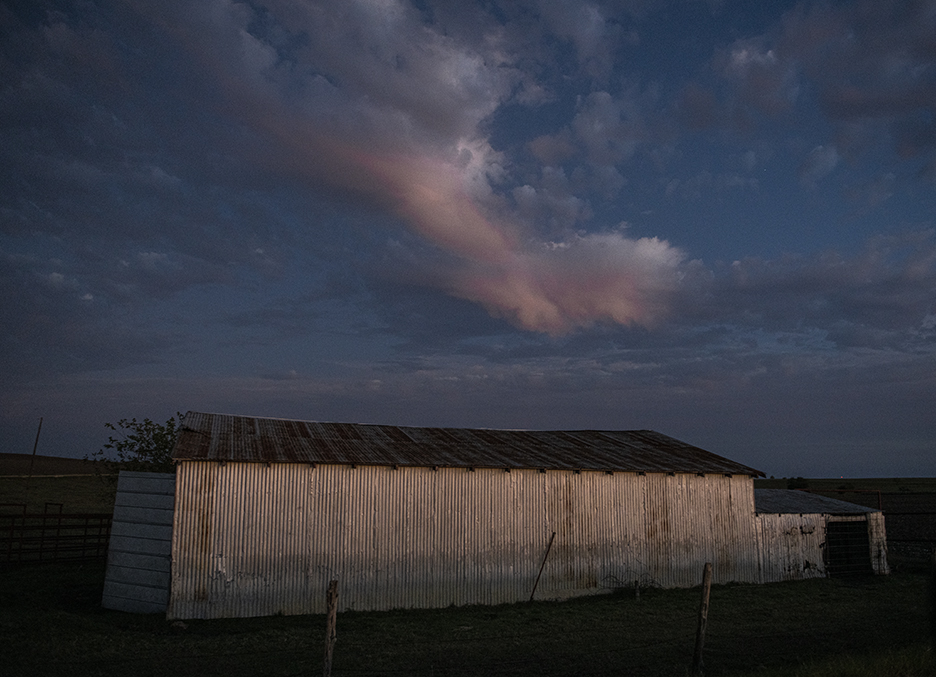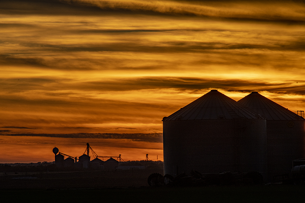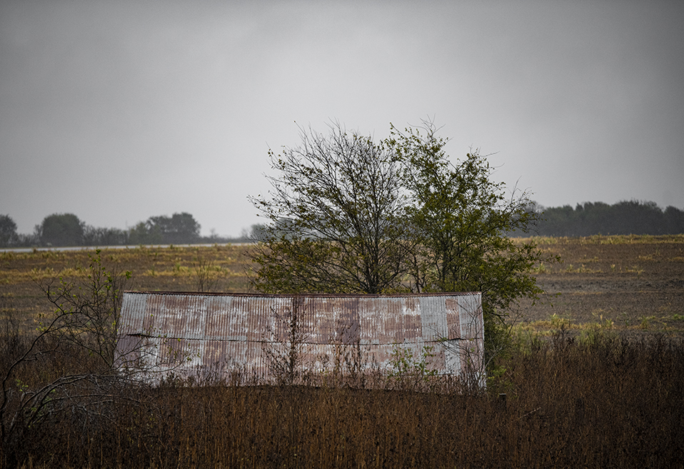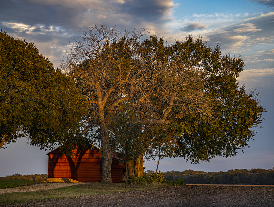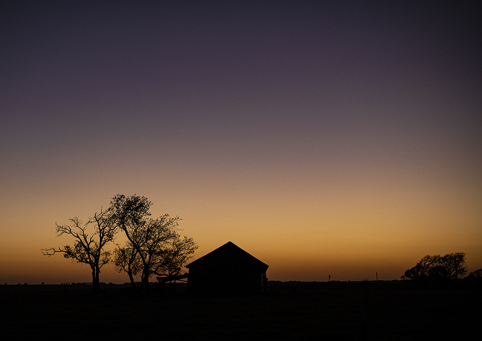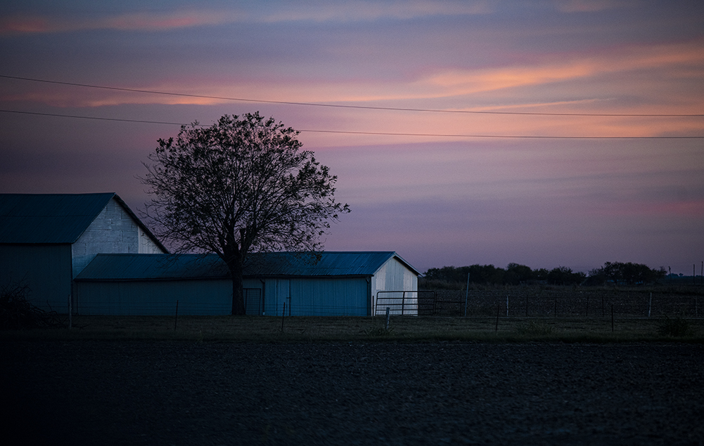 Two recent photos taken at wide-ranging times of day. The opening image was taken as the sun came up over Prince of Peace Lutheran Church Cemetery. The purple-hazed second shot is a very retired farmhouse resting on a lovely bit of land near Thrall.