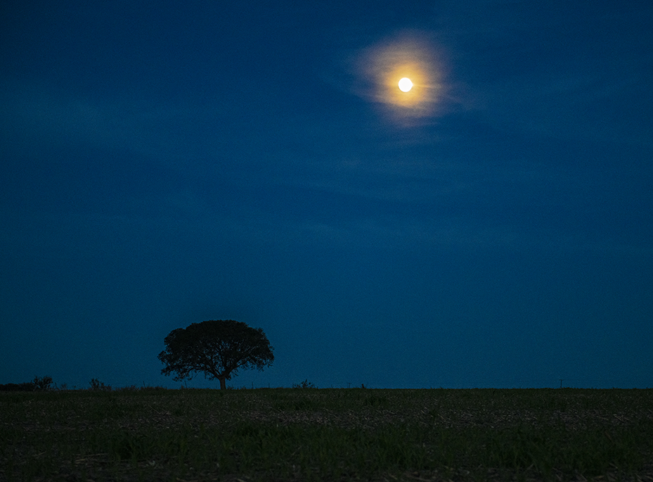Call it what you want. It can be a Harvest Moon, Tiger Moon, Dog Moon, or whatever. It’s the moon, friends, beautiful in all its iterations. Tonight it’s a Waxing Gibbous moon, 97.2% visibility. This one’s over a field east of town, with a little blue night light, too.
