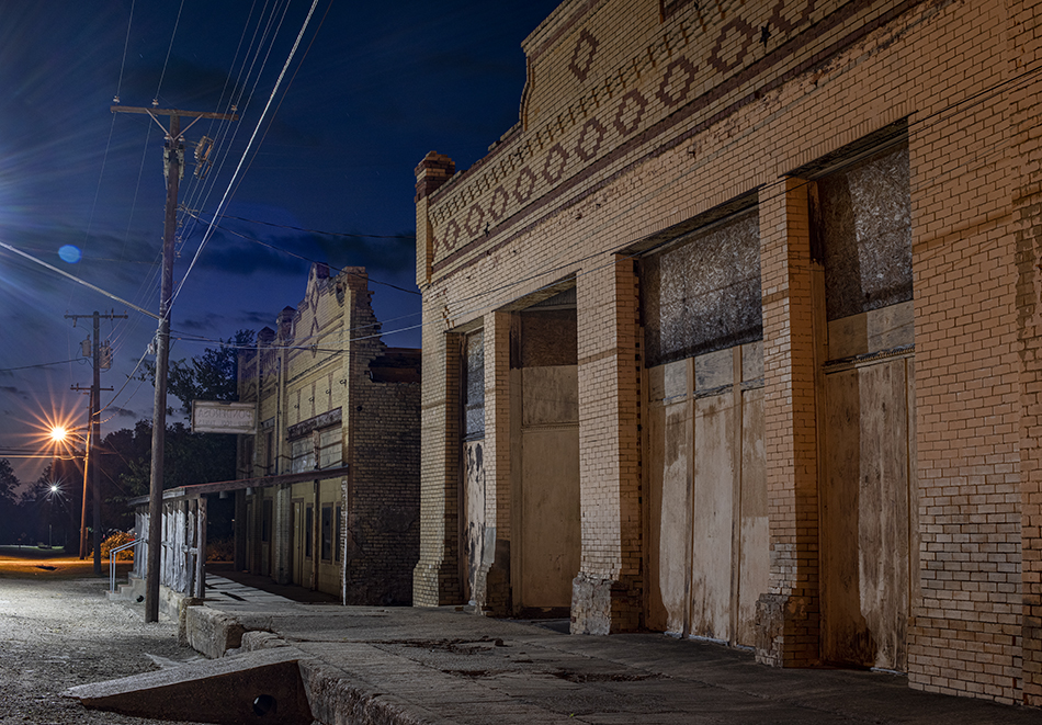 It’s been a while since my last visit to Thorndale, Texas, a community of a little over 1400 about 13 miles east of our home in Taylor. It’s mostly in Milam County, but apparently a tiny portion is in Williamson County, home to Taylor. It was founded three miles west of here in 1878, but moved to its current location two years later. As the days grow shorter, once again I have the opportunity to delve into night photography. The small towns in our area are perfect for that treatment if you have a good tripod and aren’t afraid to use it. Much of the first half of “The Rookie,” a 2002 film starring Dennis Quaid, was filmed here. The baseball field in the movie is still in use, but not in this post. These are just some downtown images.