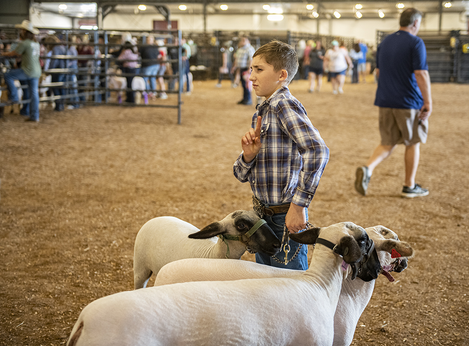 On Saturday, the closing day of the Williamson County Fair and Rodeo, I spent most of my time watching kids from around the state show off their sheep and goats. It was wonderful to see. Growing up in Texarkana, I remember livestock being an integral part of our annual Four States Fair and Rodeo. The number of very young children at Saturday’s competition was impressive. Among the youngest was a red-headed 4-year-old from Troy, Texas, who showed his entry named “Sweet Girl.” Like the other entrants, he was in his element. Moms and dads were extremely supportive. One young teen, who was showing three lambs, held up his fingers, asking this pesky photographer to give him some space. I only shot that one frame. A few minutes later, he was happy and good to go! Our new county fair pays homage to the agricultural roots here. As growth continues to dominate, it’s good to hold onto those things.