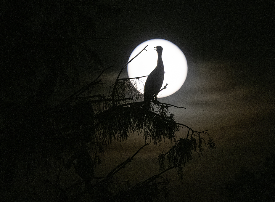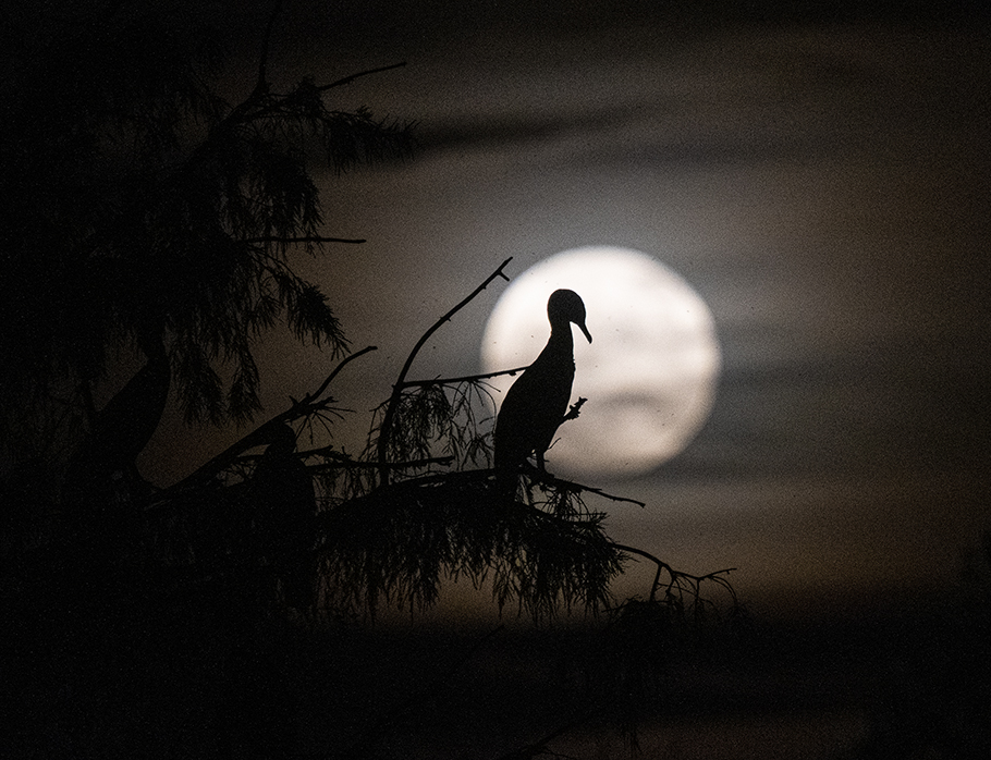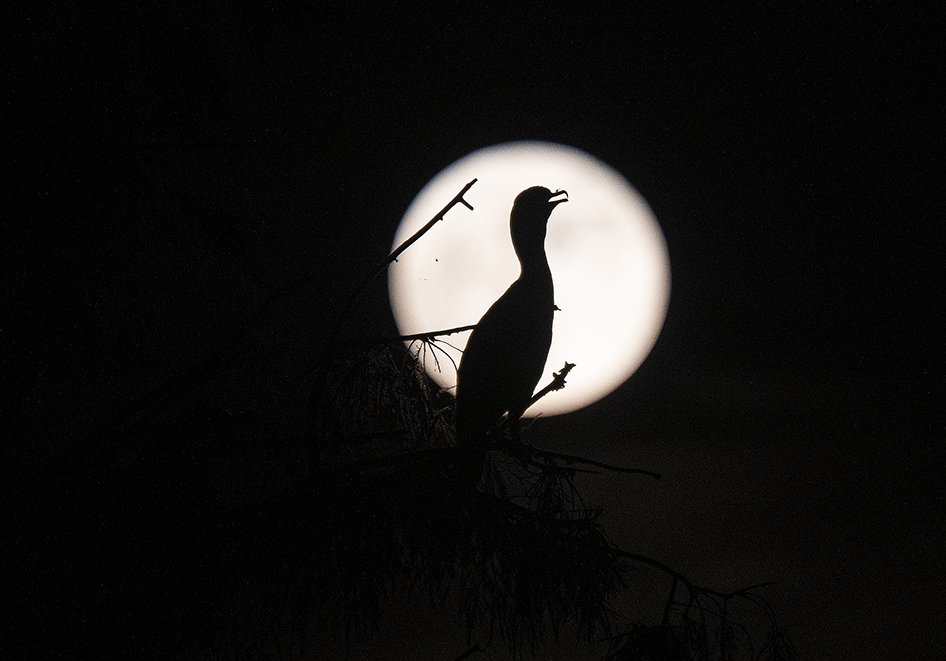 Last night’s moon was closest to a full moon we’ll get. This evening we’re in the the Waning Gibbous phase, 99.9% visibility. I’ve heard this month’s full moon called a Hunter’s Moon. Let’s just call this a Cormorant Moon. From tonight at Taylor’s Murphy Park.