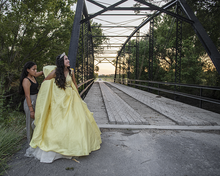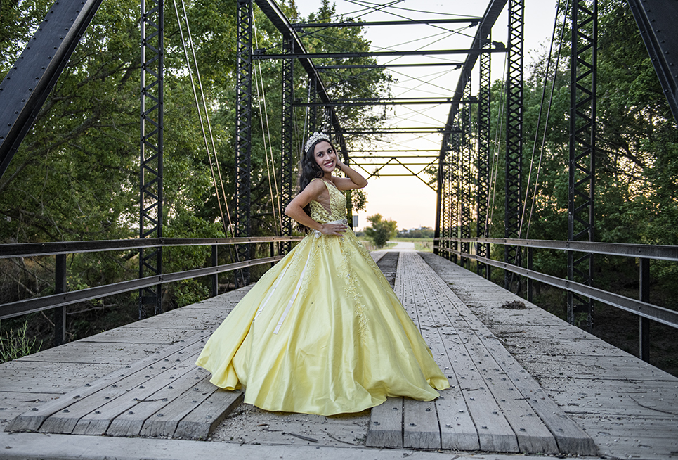 Wandering along a favorite county road in Coupland tonight I happened onto a young lady getting photos taken for her upcoming Quinceanera celebration. The photographer onsite graciously allowed my presence for the few short minutes I was there. This bridge was featured in the beginning and conclusion of the 2003 movie “Secondhand Lions,” filmed at several locations in the area. Just one of those slice of life things happening all around us every single day. For what it’s worth, I know there’s a tilda over the second “n” in Quinceanera, but couldn’t determine how to place it!