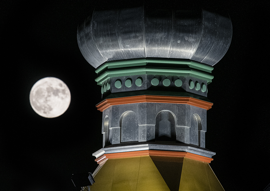 The moon is at 99.3% visibility tonight. Monday night will bring a Harvest Moon, but it comes well past sunset. I like the way it looked in Wuthrich Hill, Texas this evening. And yes, it’s Prince of Peace Lutheran Church. Of course.