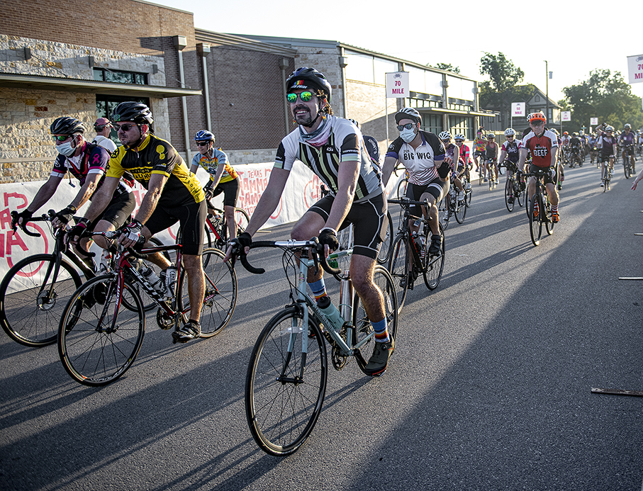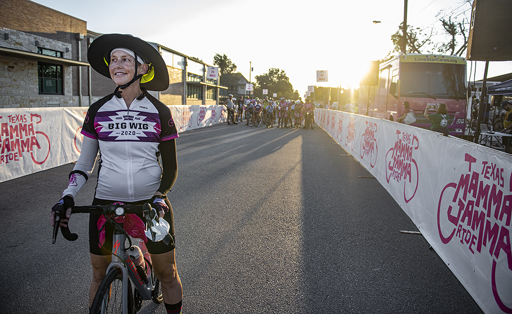 Before the sun rose this morning, I was at Taylor’s Heritage Square Park for the Texas Mamma Jamma Ride, a bike ride coordinated by Lone Star Circle of Care. The ride benefits the Big Pink Bus, Lone Star’s Mobile Mammography Unit. The rides gave cyclists four different mile choices: 70, 50, 25 and 15, taking participants through some of the lovely scenic areas of East and North Williamson County. Cancer survivors were significant participants in the event. At the start, they were given the positions out front. Three of these eight photos are survivors. There were many more than what you see here. It’s a cool event, for an important cause. The gentleman in the tutu rode his entire 70 miles adorned in pink.