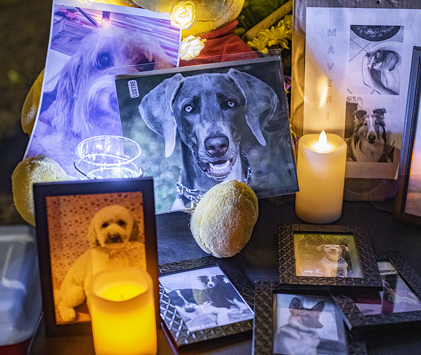 I’ve purposely stayed away from posting anything about the Georgetown fire late Saturday night at Ponderosa Pet Resort that took the lives of 75 dogs. This post won’t get into the issue of business permits, or the fire’s cause. The pain these families must be going through is beyond my imagination. To many of us, dogs are not just pets, they are integral to the fabric of our families. These photos were made during a vigil for the lost dogs held Tuesday night at San Gabriel Park. Two women are pictured holding photos of their lost dogs, Bear, and Sammy.