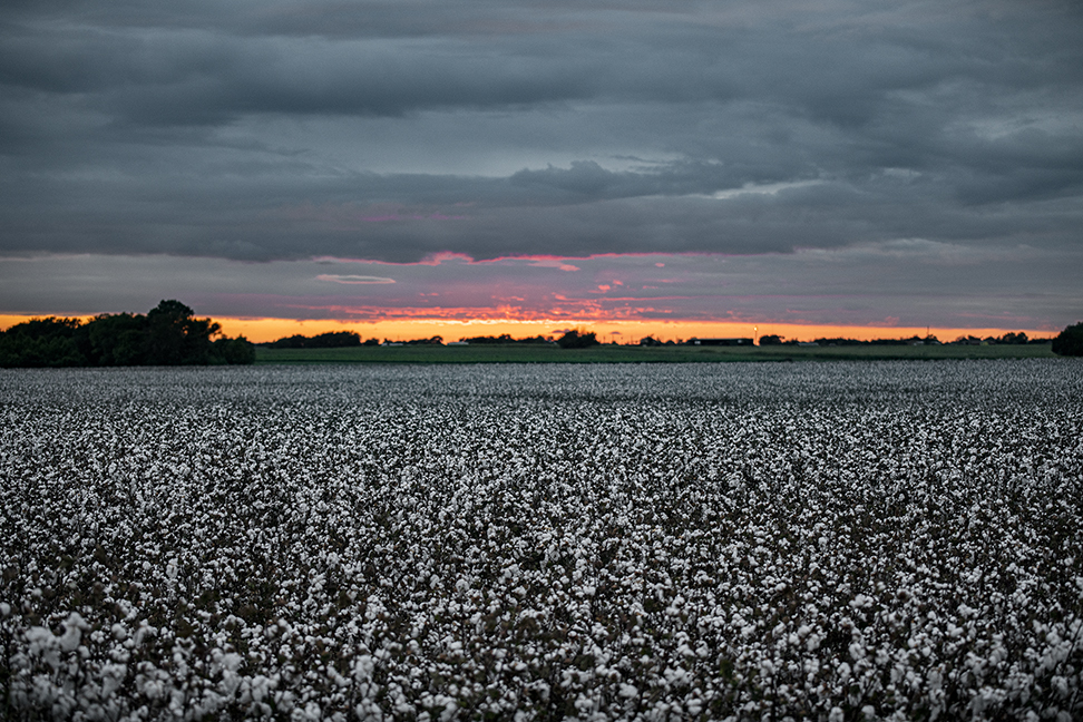 Because it’s so white, a field of healthy cotton shows up nicely even as darkness comes. This scene captured my attention last evening a little east of Georgetown. This is one of those crops only seen in the warmer climates. I’m not sure where it stops being viable in the United States, but you’ll not likely see it in the upper south, or most places in the midwest. We grow a lot of it here.