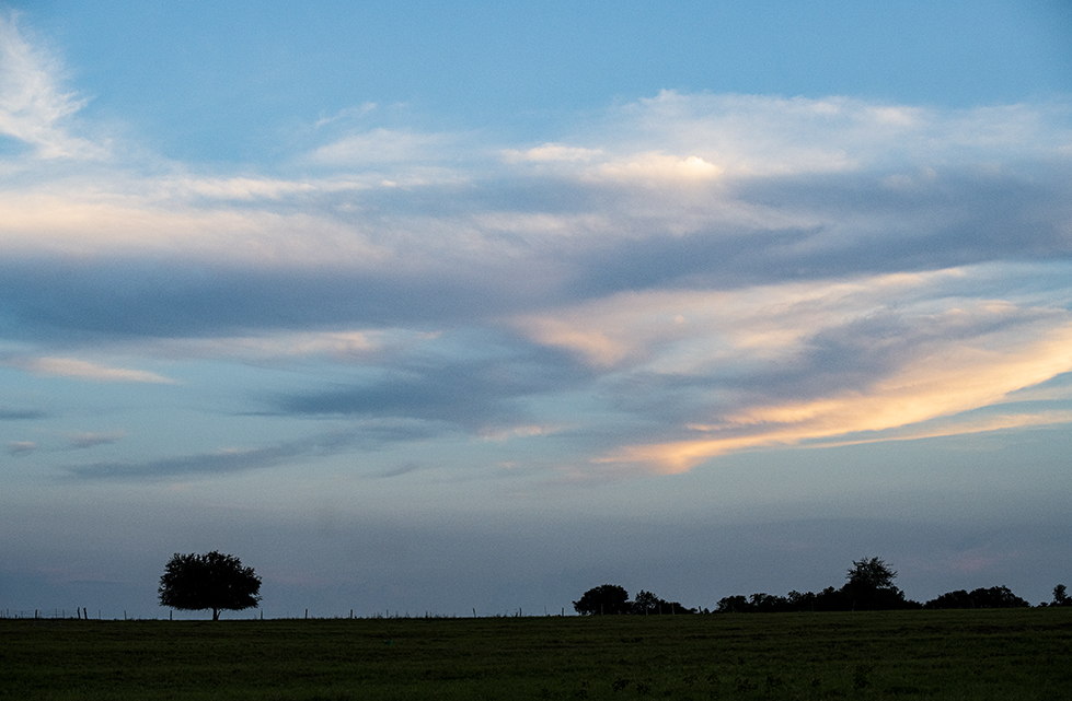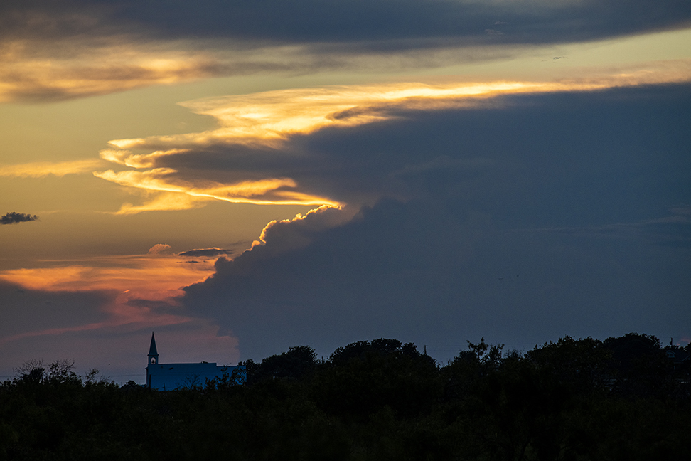We were expecting storms last night. While they didn’t materialize, we were treated to some marvelous Central Texas skies. I wandered a few miles south, to the village of Coupland, still around 300 residents. There are many things to admire about this community, but a favorite subject is St. Peter’s Church of Coupland, affiliated with the United Church of Christ, different from the Church of Christ. Look it up if interested. The church’s congregation formed around 1890, comprised of Swiss and German immigrants. They met for years in a schoolhouse, but built their current church in 1905-06. A fellowship hall was added in later years. There’s a quote on their website I like: “We encourage kind debate and gentle disagreement.” But I digress. These images pay homage to the church, but also the painted skies. And a fine-looking cow, too.