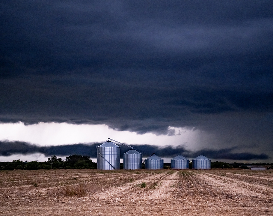 It’s a bit stormy on the Blackland Prairie tonight. Grain elevators, or if you prefer, grain bins, are a favorite subject. On dark and turbulent evenings their shiny facades often stand out. This was a few miles east of Taylor.
