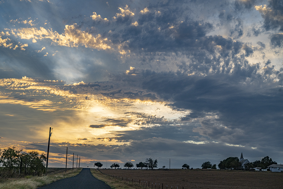 A good bit of time has passed since the last photographs from Prince of Peace Lutheran Church in Wuthrich Hill, a few miles east of Taylor. Interesting bits of turbulence on Friday and Saturday nights prompted these offerings. The first two are from Friday, the rest from Saturday evening, when the weather was more intense. It’s a church and cemetery resting gently on a hill overlooking portions of the Blackland Prairie. Trees have grown taller around portions of the facade, but it’s still a beautiful place.