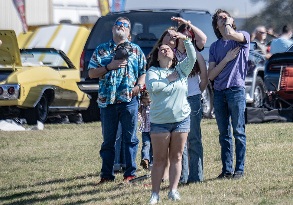 From the Stephanie Nichols’ Car and Vintage Plane Show at the Georgetown Airport today. These are mostly what you expect to see from these events, except for skydiver. That’s Army veteran Michael Vasquez, who served from 2005 to 2010, losing both legs in combat, earning a Purple Heart. Michael is in the opening photo as attendees salute his descent. See his story here. More that these were offered to the Williamson County Sun. But Michael is the story here.