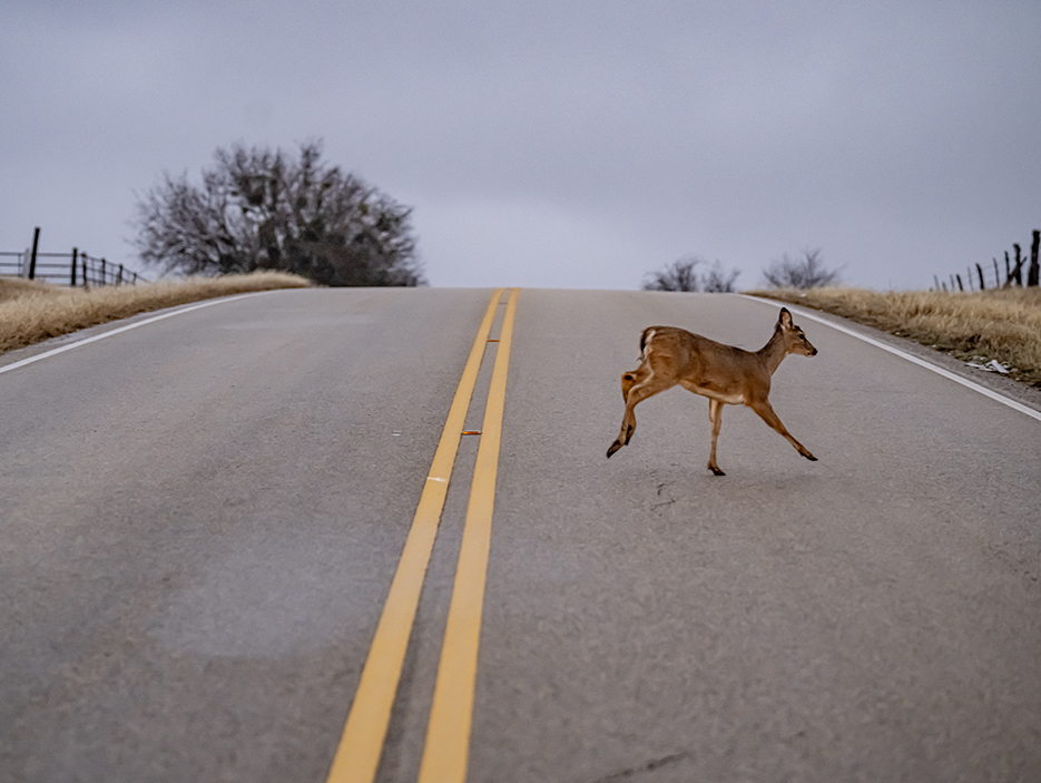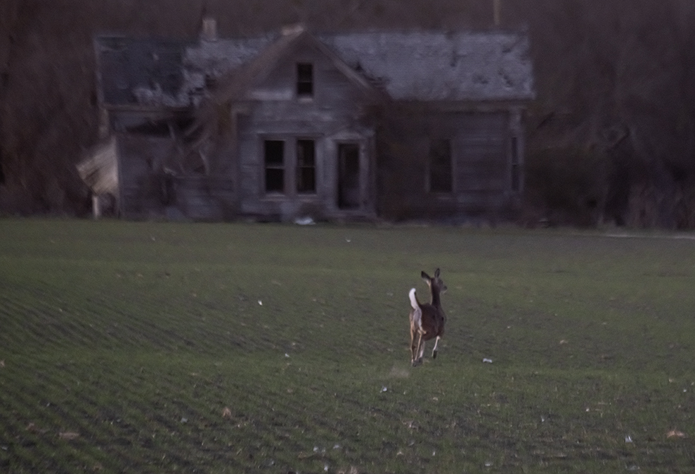 Photographs get collected while wandering around. Sometimes they morph into a theme. While they mostly stay off the roads, a few deer cross some busy paths. One deer seemed glad to stay close to an abandoned farmhouse, but soon skedaddled at the sight of a camera.