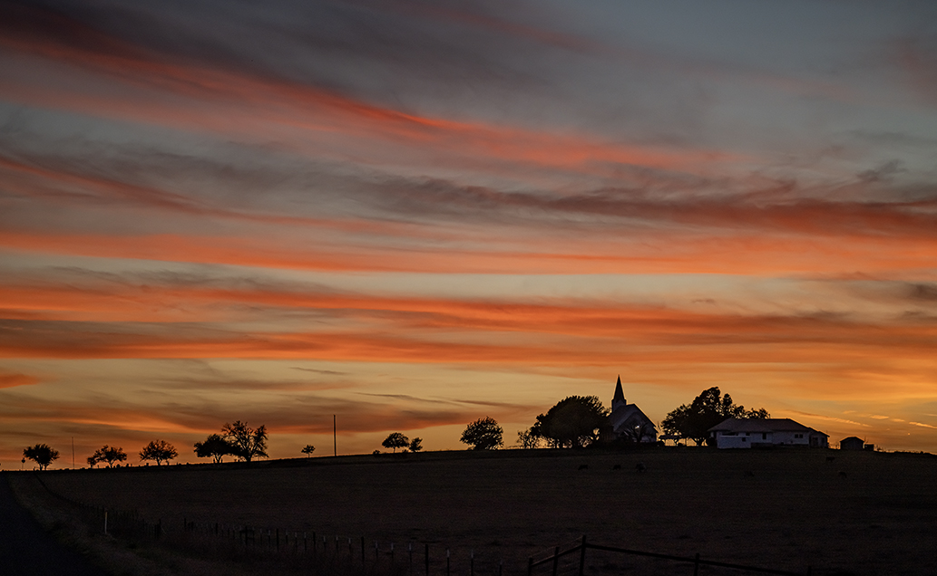If conditions are right, you’re apt to see repetition of recent subjects. One that often lends itself to return visits is Prince of Peace Lutheran Church in Wuthrich Hill. This one is from early Wednesday evening. The skies here can sometimes be inspiring. Spring is here.