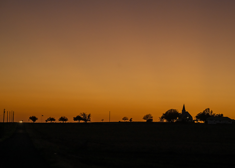 A photograph from this evening in Wuthrich Hill, Texas. Prince of Peace Lutheran Church and cemetery stands on a hill overlooking the prairie. This is meant to be a short post, but a bit of history is added. A number of years ago, this scene was inspirational enough for a night photograph. As a photo was taken, two sheriff’s office vehicles raced down the hill., coming to a hasty stop, wondering what was happening. They’d had a call from someone in the area about a stranger nearby. “Could you take a look at my camera screen?” When they did, the tense moments lessened as they smiled. “You’re taking a photo of the church!” they said. Of course. Frustrated, a later stop at the church parsonage was welcomed by the pastors. “You can park at our church anytime you like. Photographs are welcomed.” Thankfully, tonight’s brief stop wasn’t met with distress. These places on the prairie are always documented with love. The level of distrust is sad.