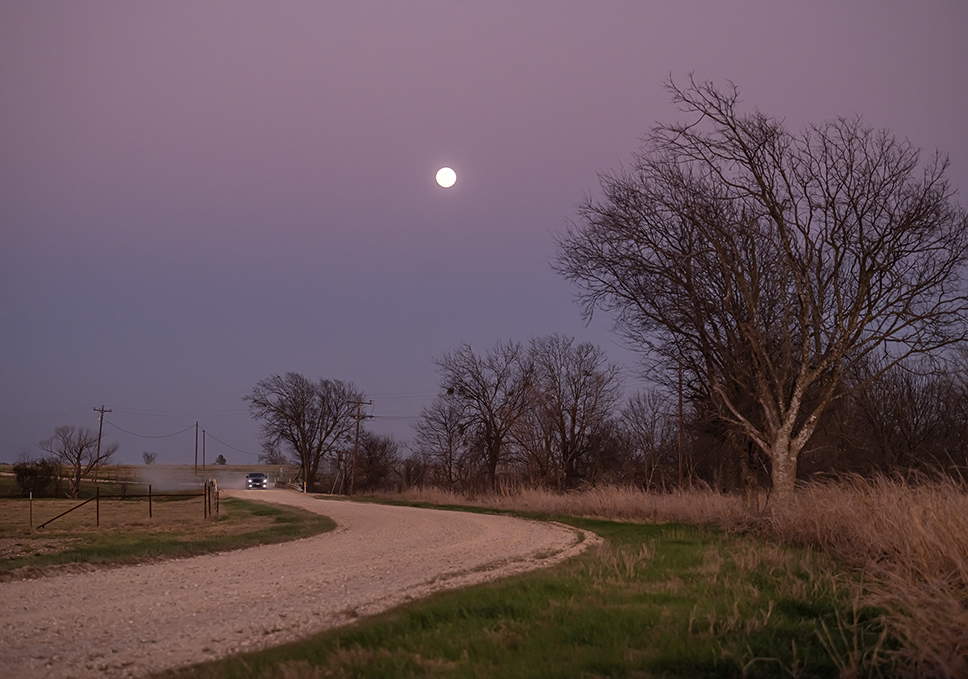 Photographs from tonight as a full moon rose over areas of the Blackland Prairie. A lunar eclipse will likely be visible in the very early morning hours. No guarantees that will be photographed since this photographer usually gets only 3-4 hours sleep a night. This might suffice.