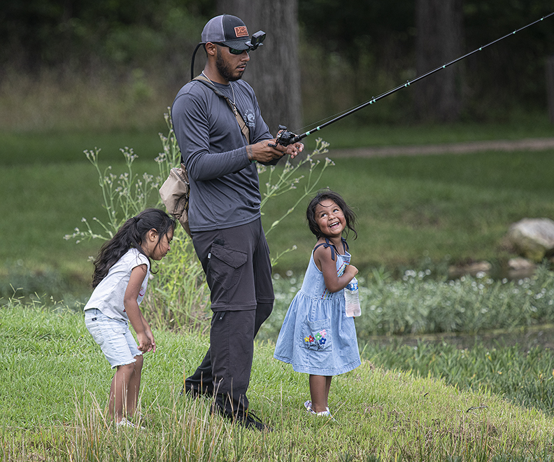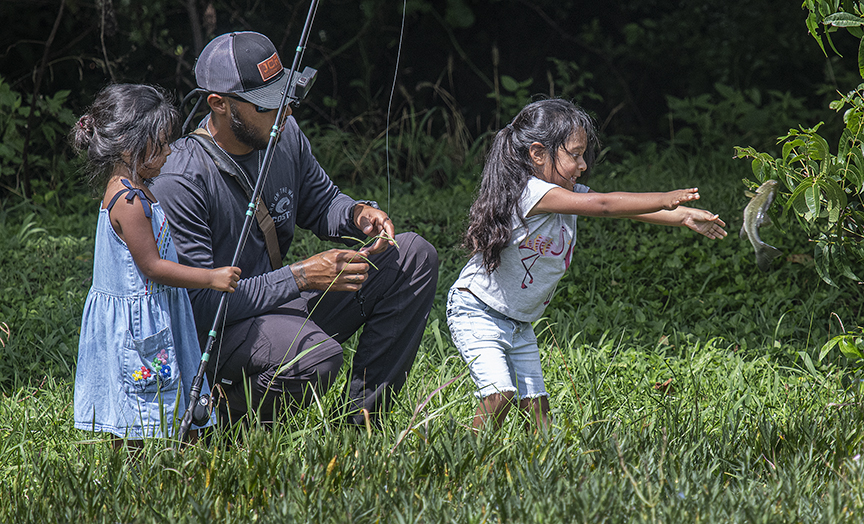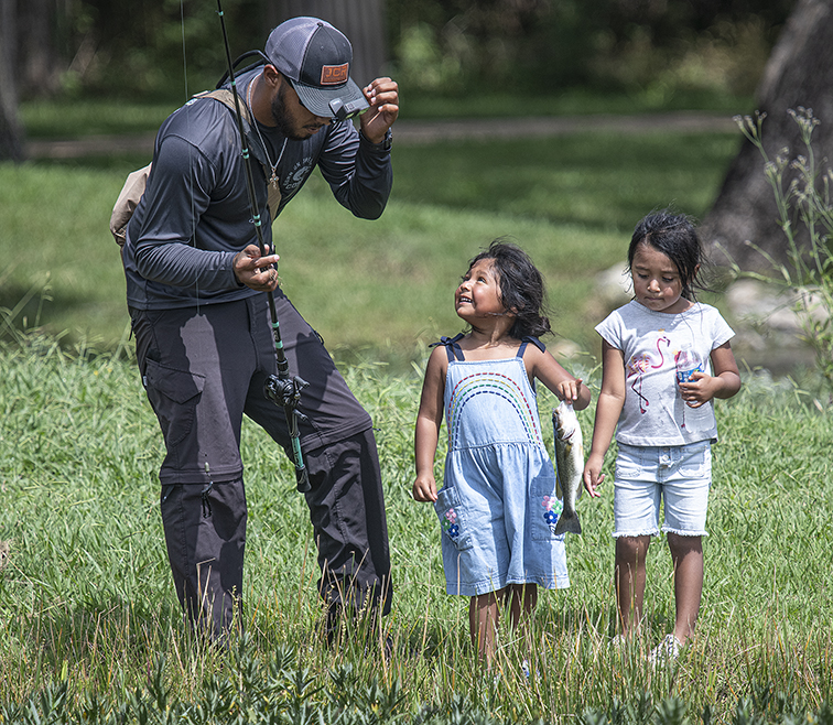 Occasionally I visit Georgetown’s Berry Springs Park & Preserve to enjoy nature. Sometimes, however, I find something more fun, like today when meeting a dad enjoying a fishing outing with his daughters, ages three and four. It turns out today is actually the 3-year-old’s birthday! She’s the young lady wearing the blue dress. Dad was teaching the girls how to catch and release, too. Later, a birthday celebration was planned back home. This was indeed a good day.