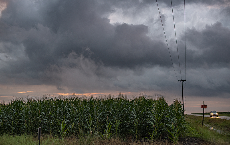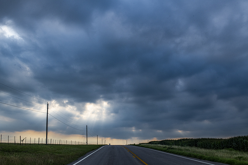We’re still in the midst of days and days of stormy weather, but at least for a while this evening, the sunshine peeked through the clouds. These are photos from Georgetown and East Williamson County. Included is the spire of Georgetown’s First United Methodist Church, plus the Palace’s Doug Smith Performance Center. Moving east, there’s a shiny road leading to some nice grain elevators, finally, a few minutes after sunset, a car passing along a field of corn. We take any sun we can get these days.