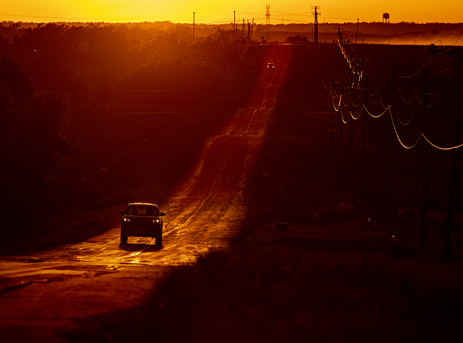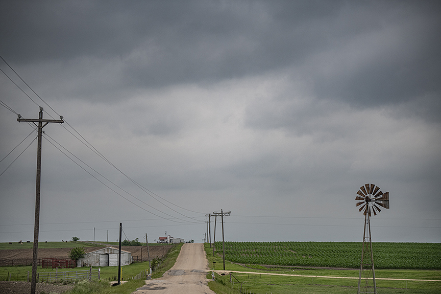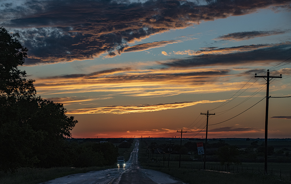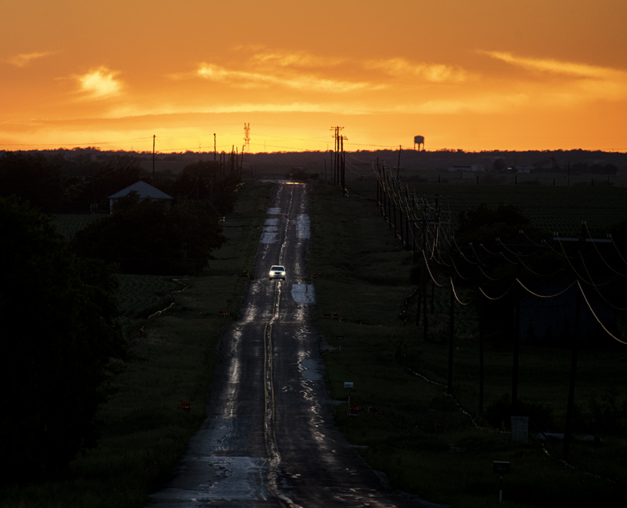 Evening descends along a farm to market road in Northeast Williamson County, Texas. These photos were taken from the driveway of a friend who has lived along this road for decades. During a recent visit, I learned about the coming expansion of this road, eventually an extension of Ronald Reagan Parkway, a wide and very busy highway that begins on the western side of Williamson County. While my friend’s home appears to be safe, a good slice of her frontage will be taken. Looming development continues to rear its head in farm and ranch country.