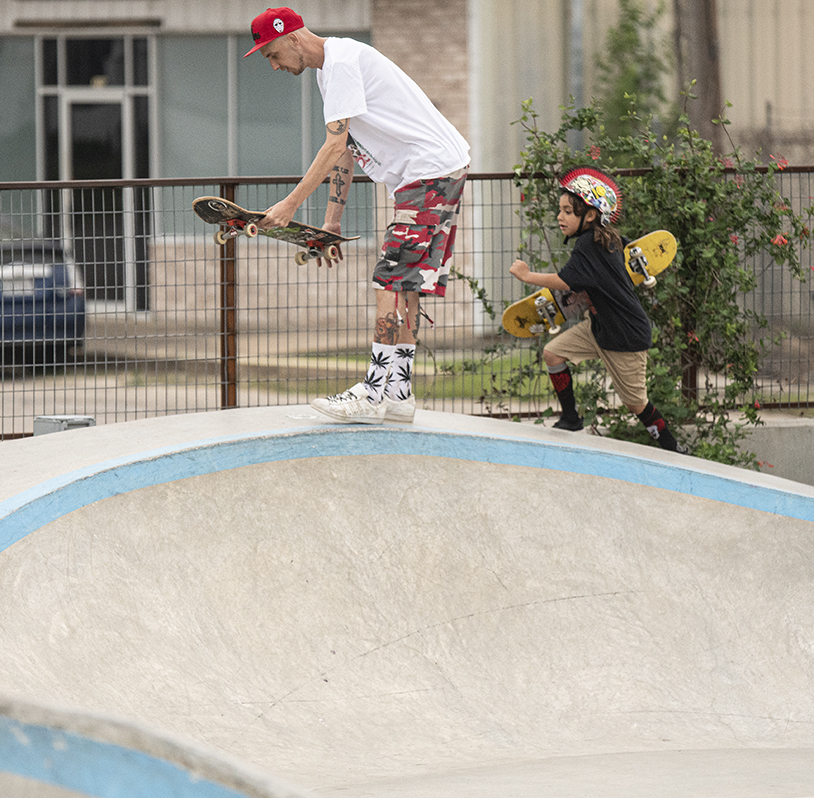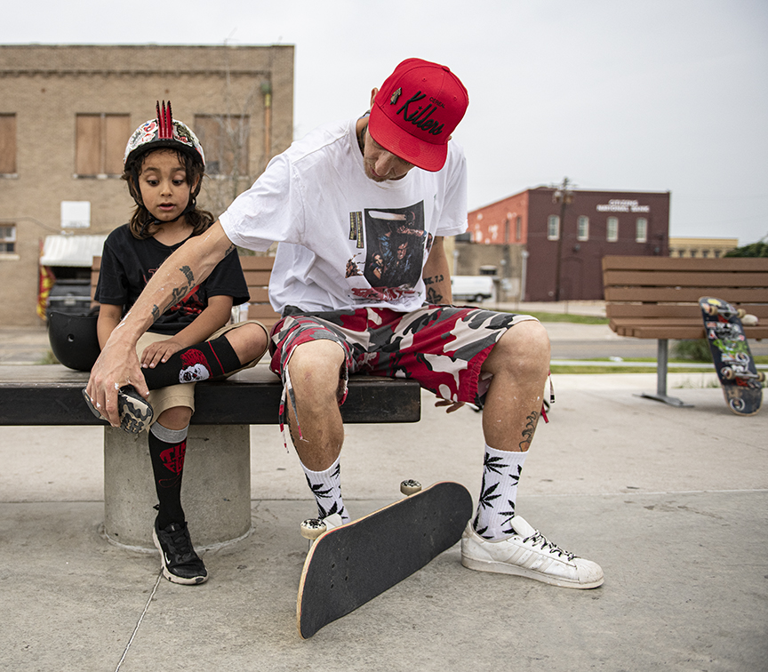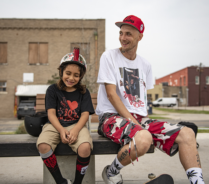 If you’ve followed my posts for a few years, you might recall a Fathers Day story I did 3 years ago this month about Dennis Levitin’s relationship with his then 4-year-old son, Mikail. Dennis, an artist and musician from Denmark who lives in Taylor, was raising Mikail mostly on his own. Since then, I occasionally see them at the park or around town. A recent post Dennis mentioned that dad and son, now 38 and 7, were getting into skateboarding. Taylor’s new skatepark, Pierce Park, recently reopened after COVID restrictions were eased. I joined them for a recent outing. Mikail, who will be 8 in July, is really the expert. Dad was a rollerblader in Copenhaven, but skateboarding’s new to him. The last couple of photos are from the original story. FYI, dad needs to get a helmet, too!