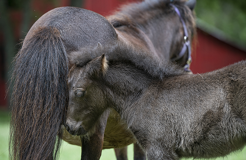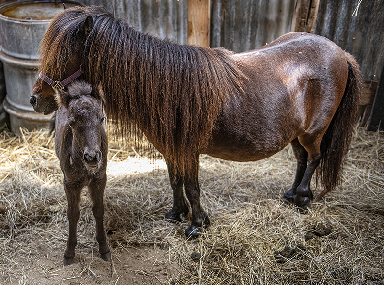 Thinking about what to post today, these miniature horses, a mama and her colt, the baby born April 14th, seemed like a good fit. A big horse race happened today in Kentucky. These little ones probably won’t ever
