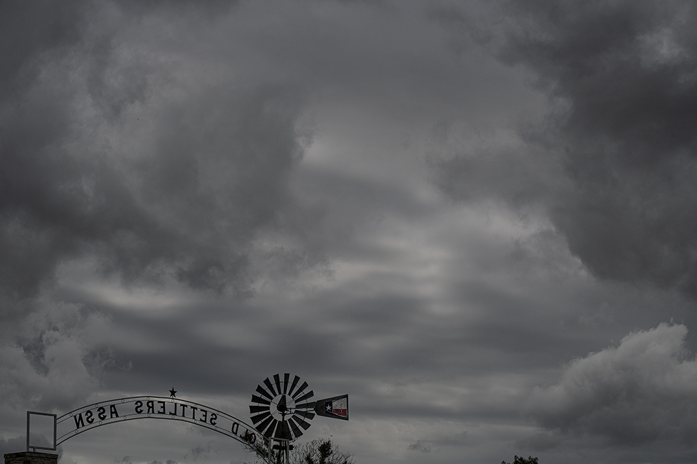 Clouds were ominous-looking Saturday afternoon near the end of the Williamson Museum’s Pioneer Days, held at the Old Settlers Association in Round Rock. Heavy rains followed. A leftover image.