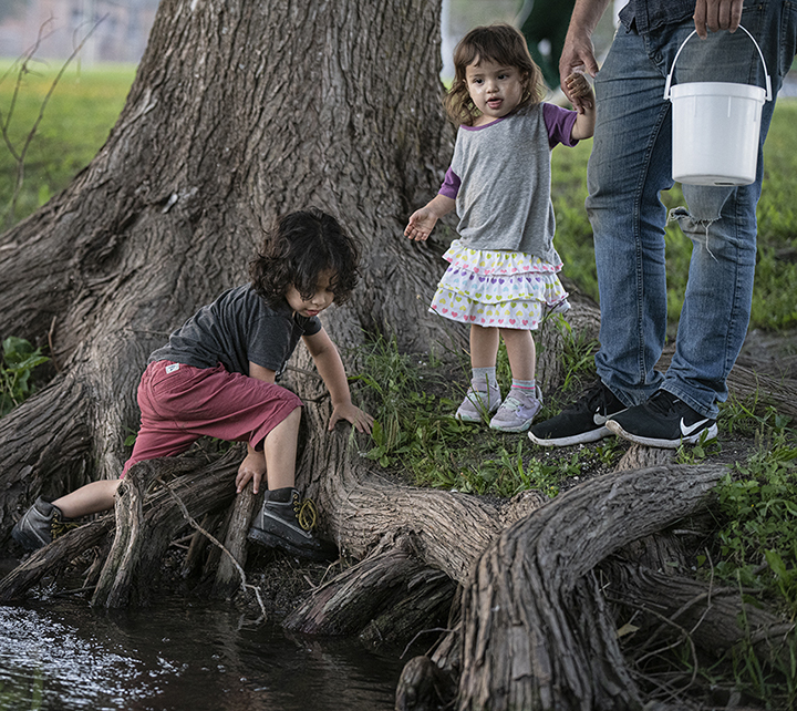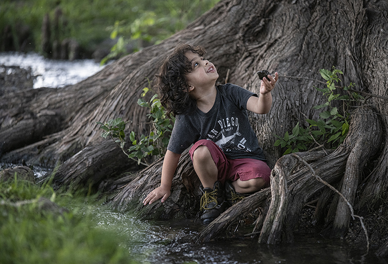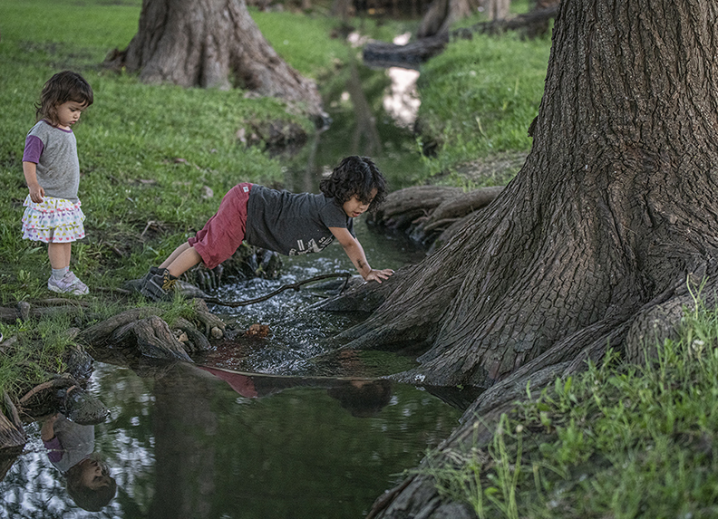 At Taylor’s Bull Branch Park last evening, I was on a mission to find something else, but the mission changed when I saw an adorable 4-year-old having a grand time at the creek, navigating the cypress trees in search of tiny treasures. Joey was joined by his dad, plus his two-year-old sister. Daddy made sure little sister didn’t venture too close to the water. The 4-year-old, however, enjoyed the adventure, only getting a little muddy in the process. It’s nice to see such a good daddy, giving his kids memories that will stay with them for a lifetime. I’ll bet Joey slept well last night! These slices of life define community photojournalism for me. They’re important, too.