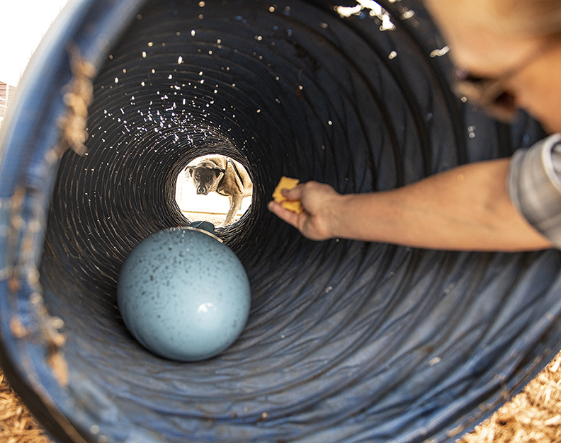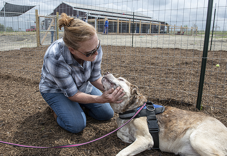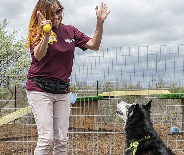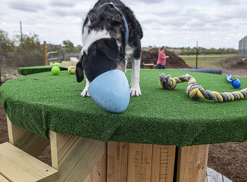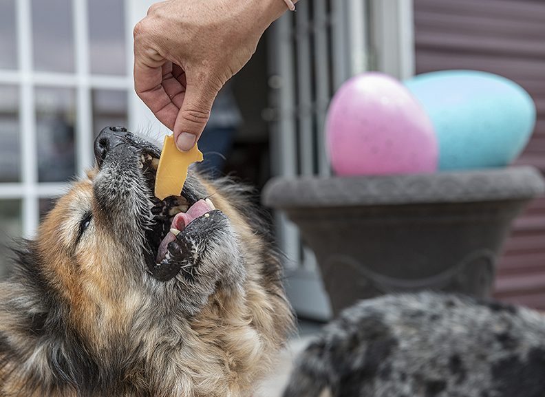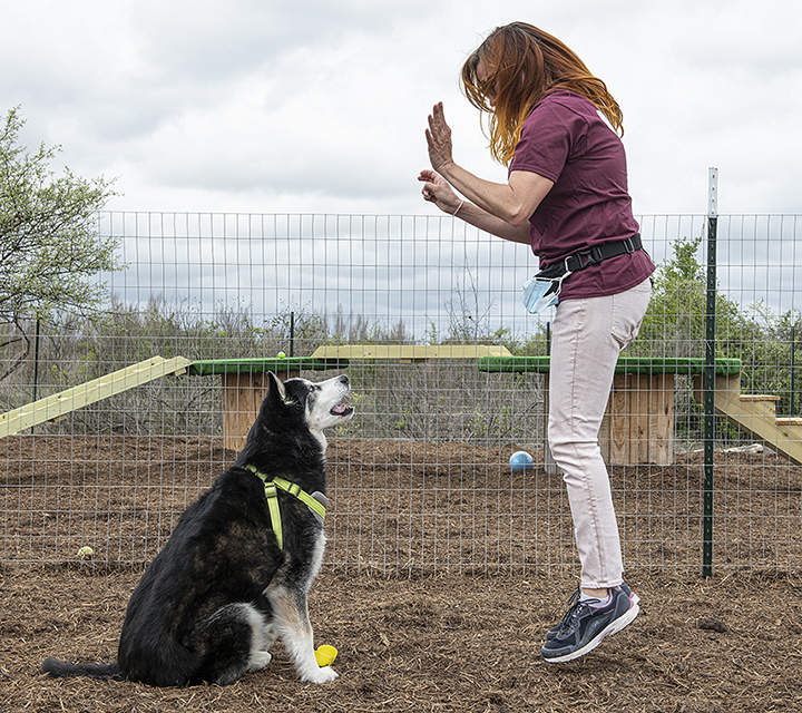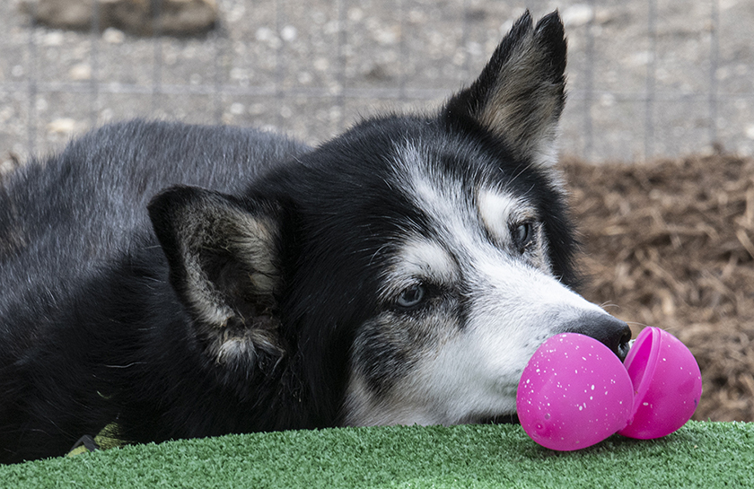 In December, Rhonda Mindardi founded Living Grace Canine Ranch, a sanctuary for dogs, a few miles north of Bertram, Texas. The non-profit’s purpose is prominent on their website: a ” charity dedicated to saving, serving and valuing the lives of displaced, un-adoptable and unwanted Texas senior canines. Our mission of mercy celebrates all breeds, regardless of physical, emotional and medical challenges,” plus “Here, you will find rest, safety and nourishment for your weary body & spirit.” Dogs who’ve been abused find homes here, as well as dogs given up by elderly owners faced with moving into nursing homes. These photos were taken Easter Sunday, when Minardi (in opening photo) and volunteers held an Easter egg hunt for their residents. One of the dogs is Tommy, a deaf Siberian Husky. Volunteer Ally Johnson communicates with Tommy via sign language. The day I was there, Minardi was caring for 27 dogs. During the Easter egg hunt, dogs were getting plenty of cheese treats. At their age, considering how many were treated before coming here, these dogs deserve to be spoiled. Minardi lives onsite. Each dog has his/her own apartment. The photos were taken for an Austin American Statesman story by Claire Osborn. Note that this is a sanctuary, a place for these dogs to live out their lives in peace and happiness. They are not available for adoption. For ways to sponsor a dog, make a donation, or volunteer, refer to their site. Also on the site’s home page–Where Love Resides. I like that.