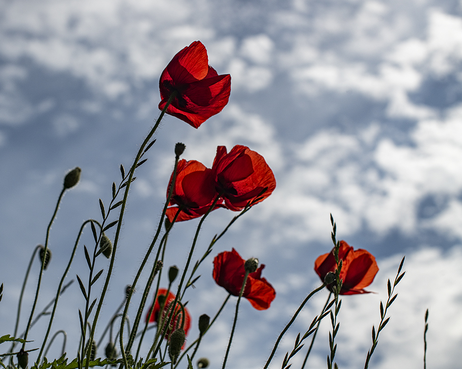 Red poppies are abundant in Georgetown this week. A few days ago, I didn’t see many, but recent rain has brought them to us in a big way. These photos were taken this weekend at Edwards Park, a little pocket park a couple blocks east of the town square. The young lady in the opening photo caressed and sniffed a few, but her grandmother reminded her not to pick them. The Red Poppy Festival, normally held in the spring, has been moved to October because of the pandemic. The poppies, however, don’t wait.