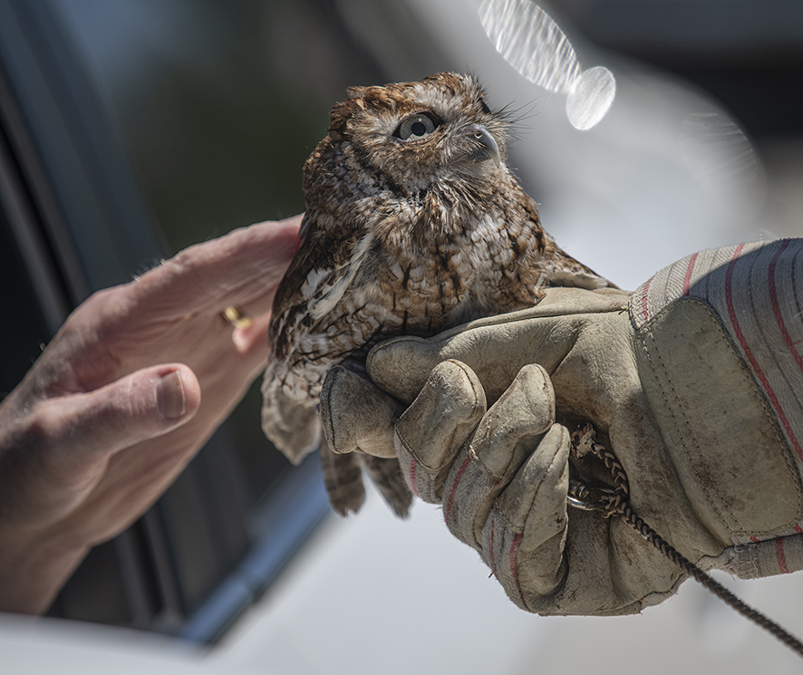 I was in Georgetown today for an Earth Day week-related recycling event held at Annie Purl Elementary School, coordinated by the city’s solid waste department. As a prerequisite for recycling paper, electronics and tires, attendees were asked to make donations to All Things Wild Rehabilitation, a Georgetown non-profit that helps wild animals in need, aiding injured, sick, orphaned or displaced wildlife, and when possible, returning them to their habitats. Some of the animals were on hand today, including a skunk called Terry, an Eastern Screech Owl called Ginger, an African tortoise, Speedy, and a Virginia Opossum, Penelope. I’m not showing you recycling photos, but that’s important. Just some sweet faces of those being given new leases on life.