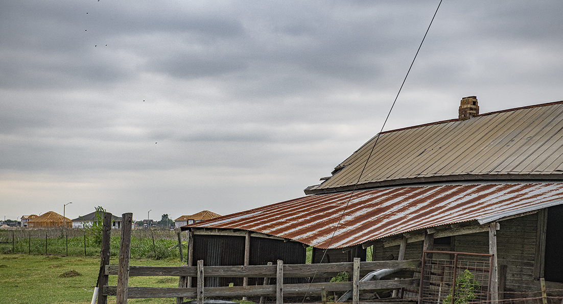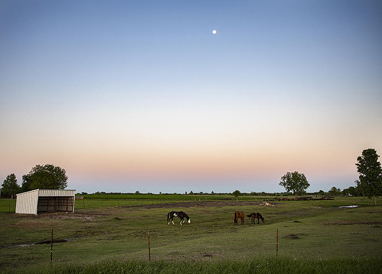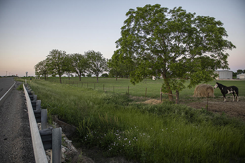 Most know of my ongoing efforts to document the land being gobbled up by development and roads on the Blackland Prairie. Since we returned to Texas in 2009, I’ve watched as subdivisions replace farmland, roads being widened to accommodate even more growth. Last week, friend Diane Naivar and her husband Raymond, made a request. Could I take photos around their place before a 10- lane road slices through 58 acres they’ve farmed for 42 years? Their home is just north of Norman’s Crossing, an area between Taylor and Hutto. Their home, at least so far, is safe. Their neighbor’s house, however, will have to go. Raymond’s raising his corn crop right now. Their three horses, including Domino, pictured in the opening photo, will have to move away from the widening road. Work, they tell me, is expected to begin this summer. One image shows a stake with an orange flag, marking how far the new road will cut into their land. For almost 30 years, I watched as development and so-called progress decimated much of metro Atlanta. Now it’s happening here. Wider roads mean more development, more people moving in. I understand that people have to live somewhere, but at what cost to longtime residents? Where does it stop?