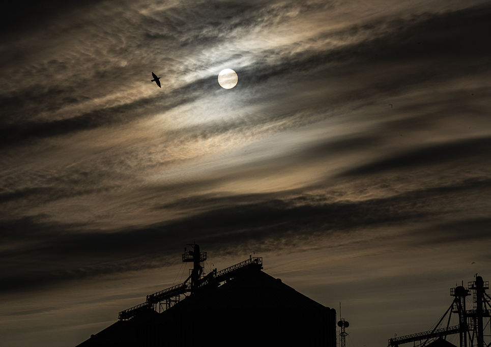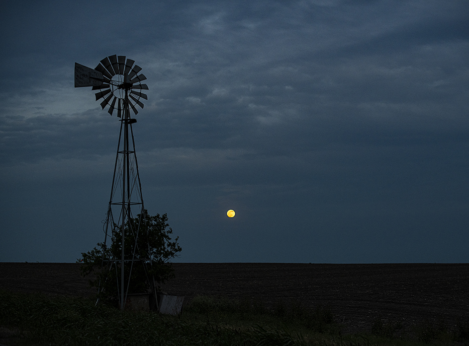 Tonight’s full moon visibility lasted 3-4 minutes before clouds covered it up. We get a lot of clouds on the prairie. For the brief moments it was visible, one thing I know: it was not pink. Yet it’s called a Pink Moon. This image was made with a 50mm lens. Back in the day, that was considered “normal.”