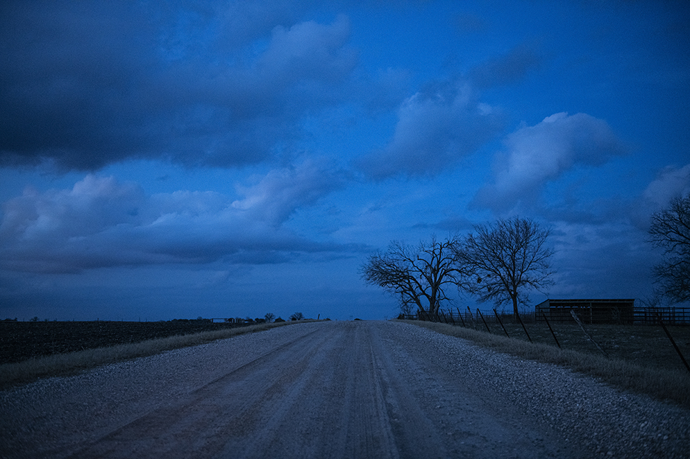 Another evening photo along a dirt road, this time near Coupland, Texas. Dirt roads and the blue hour go well together.