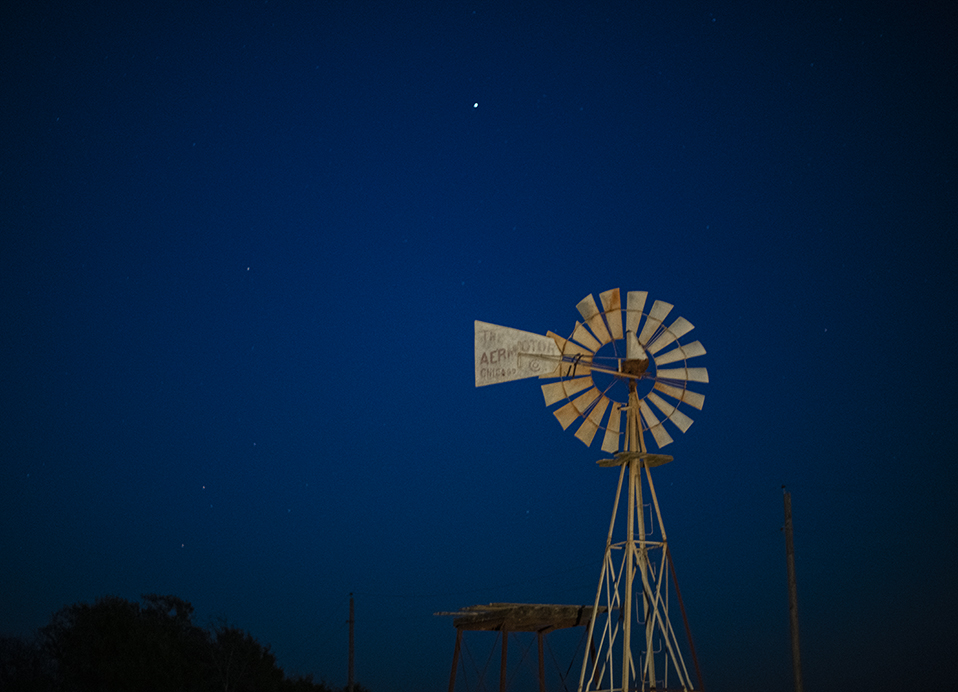 Although mentioned quite often, I have an affection for these rural skyscrapers adorning the Blackland Prairie. The opening photo, north of Granger, is surrounded by some really showy sunset lighting. The other image, south of Granger, was taken well past sundown tonight. It might be more subtle than the first one, but that’s okay.