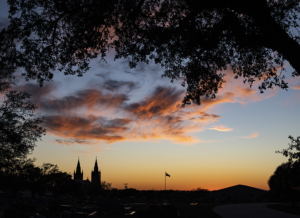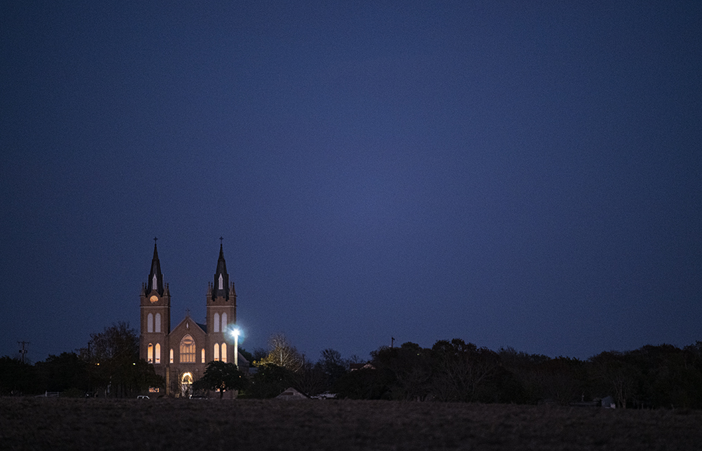 When you’re driving through North Williamson County and see Holy Trinity Catholic Church of Corn Hill for the first time, it can be a moving experience. Here you are, out in the rural countryside, then the twin spires appear. Corn Hill is not so much a town, but an area. The church came into being in 1889 by families whose relatives arrived from Moravia and Bohemia. It is Czech to its core. The current church was dedicated in 1914. The first two photos are from their cemetery, one a little wider. Another photo was taken from about a mile away, in the Theon area. Perhaps the last photo gives you a sense of the quiet countryside that envelops Holy Trinity.