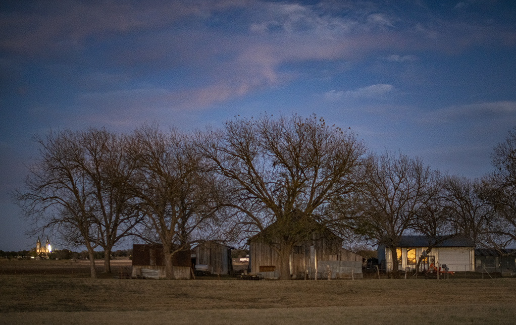 On a recent drive, I passed by this old homesite, one photographed a couple times over the years, but it’s been a while. Summer’s growth always covers up the old house, but as leaves begin to go it returns. At least for now. Not far from this field is the home of a good friend. When we visited the other night, the friend mentioned that a road project will take a portion of the land she and her husband bought decades ago. The home will remain, but a chunk of good soil will be lopped off without a thought. Since coming to this area in summer 2009, I’ve watched some beautiful and significant Blackland Prairie land get gobbled up to make way for housing developments, roads, even fuel storage facilities. These kids you’ve seen at the livestock show this week? Many live on land much like this. The second photo was made tonight on a county road I traveled maybe 2 or 3 years ago. At the time, that field, quite a few acres, was on the market. Tonight the land remains pristine, the black soil still here for planting. I know that development is inevitable, but hope the pace slows enough for farms to survive. They matter, too.