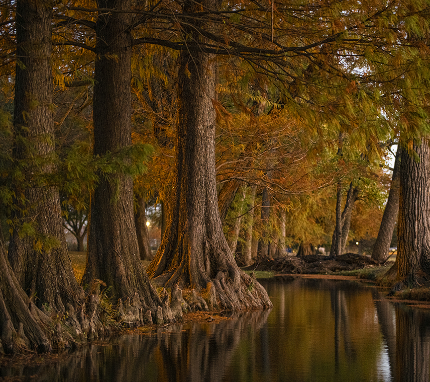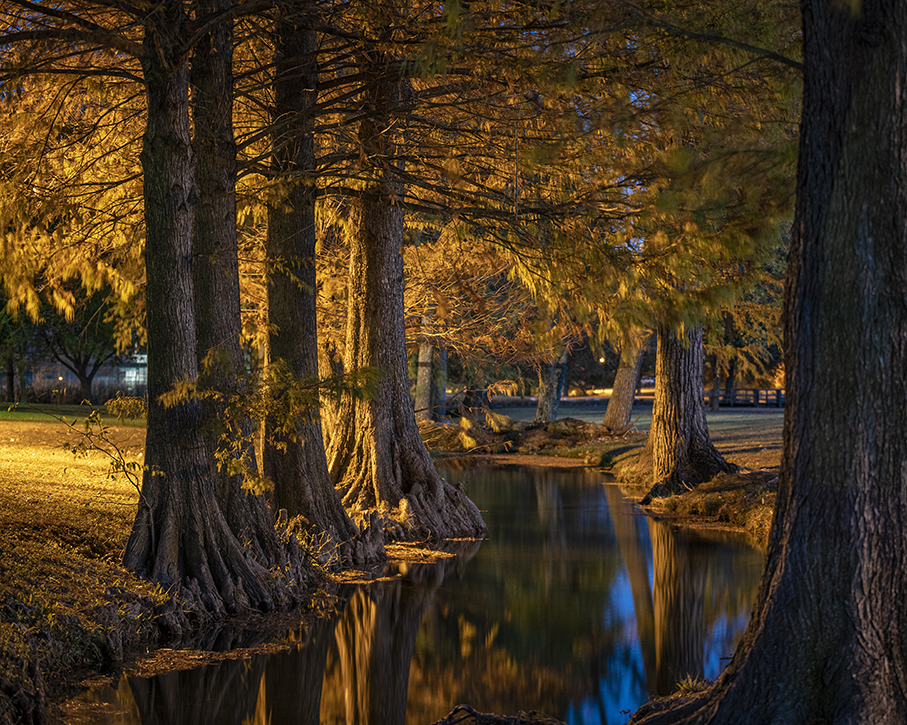 Before autumn color moves along for this year, allow a few more photos from Bull Branch Park, the awesome space just down the street from our house. These were made over a two-evening period in early-December. The cypress trees did us proud this year. I love walking through this park.