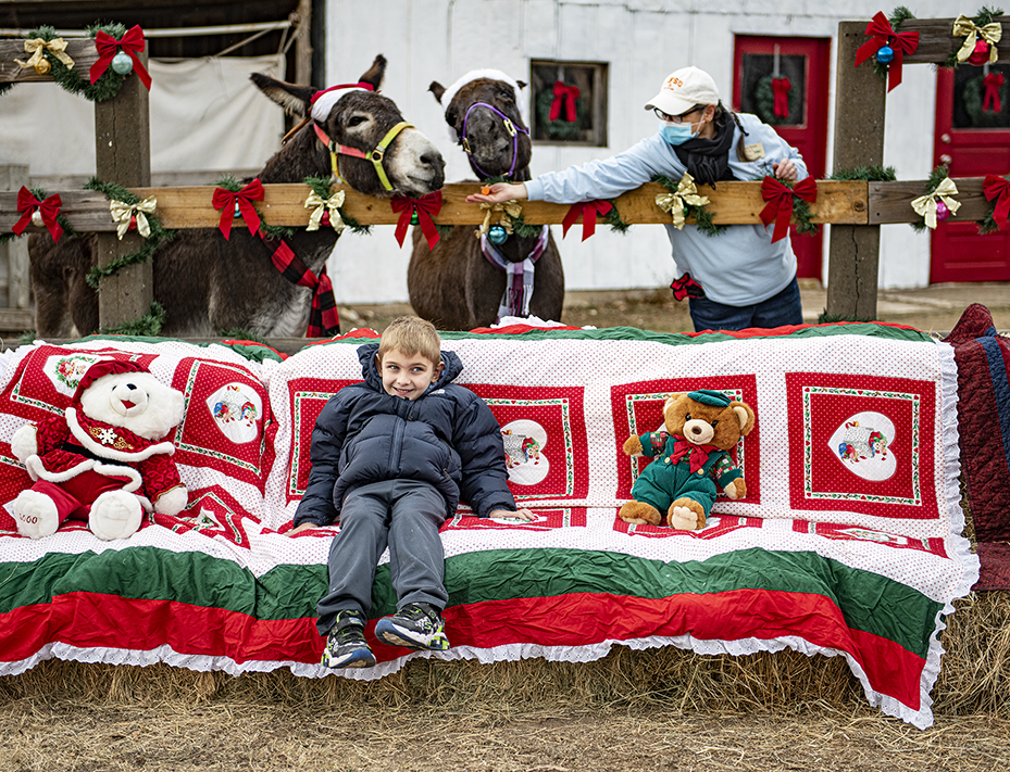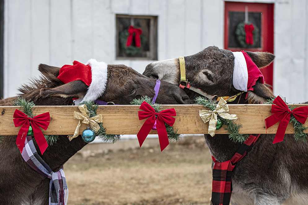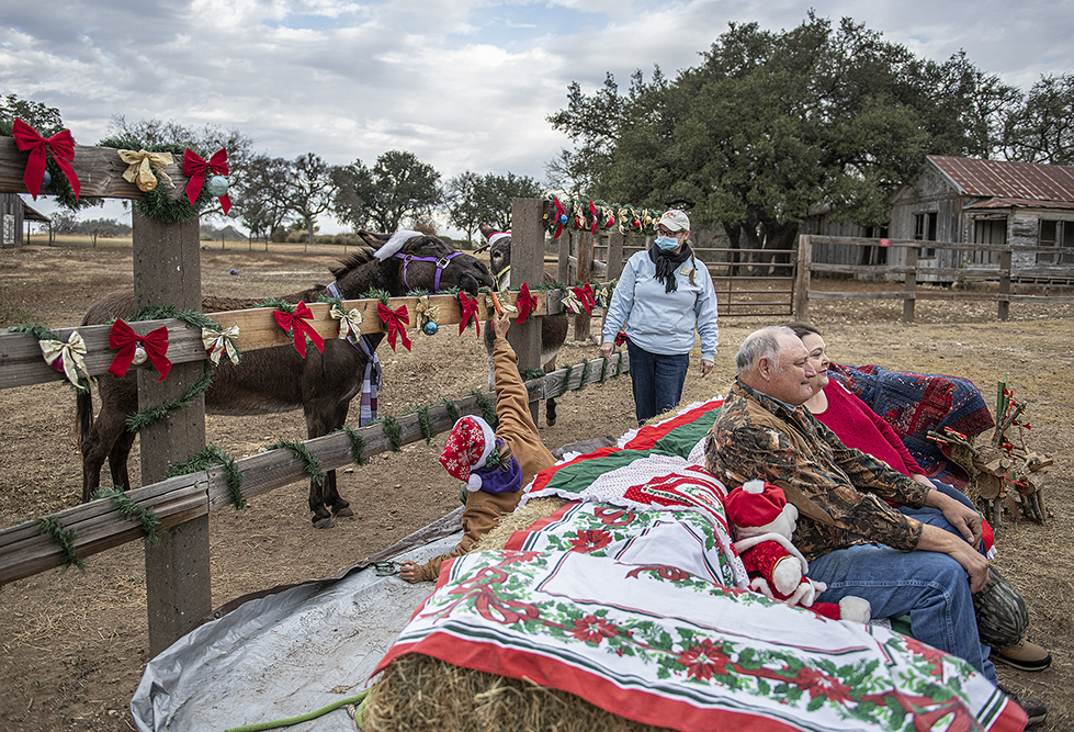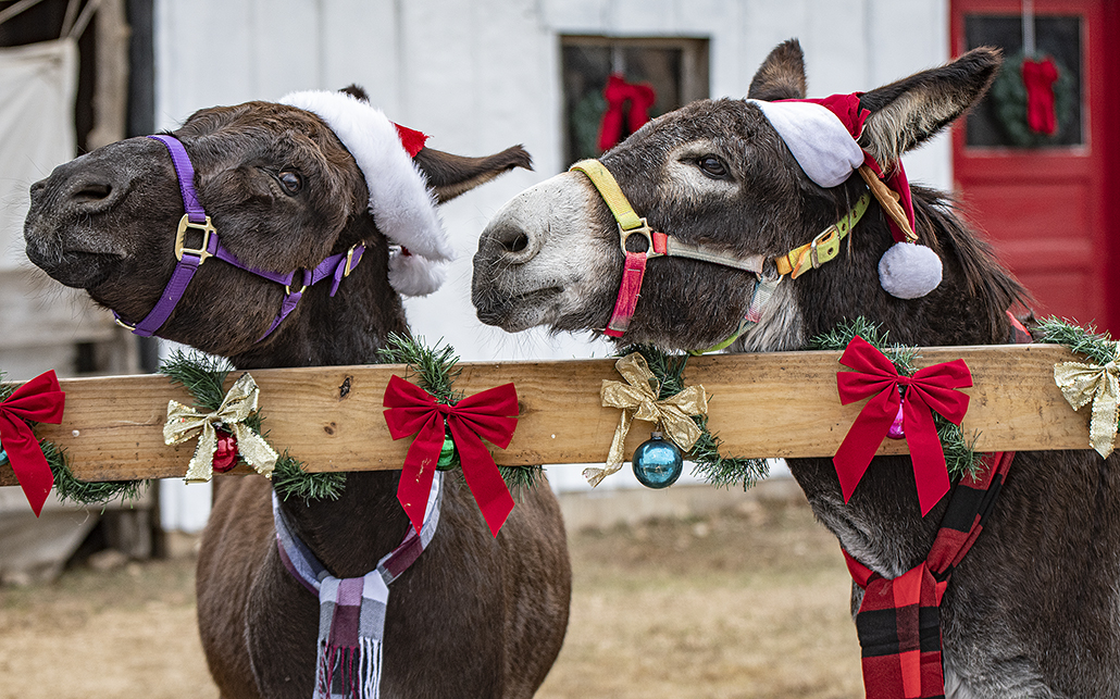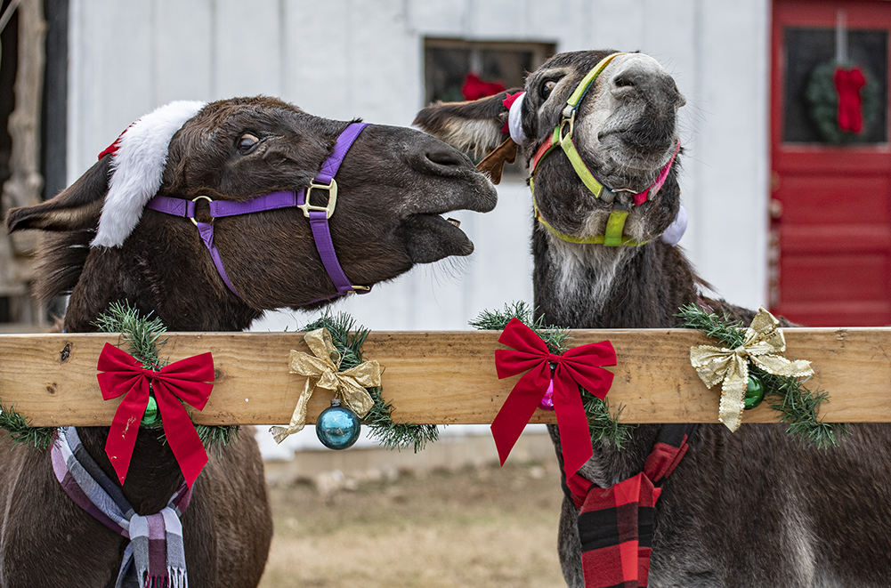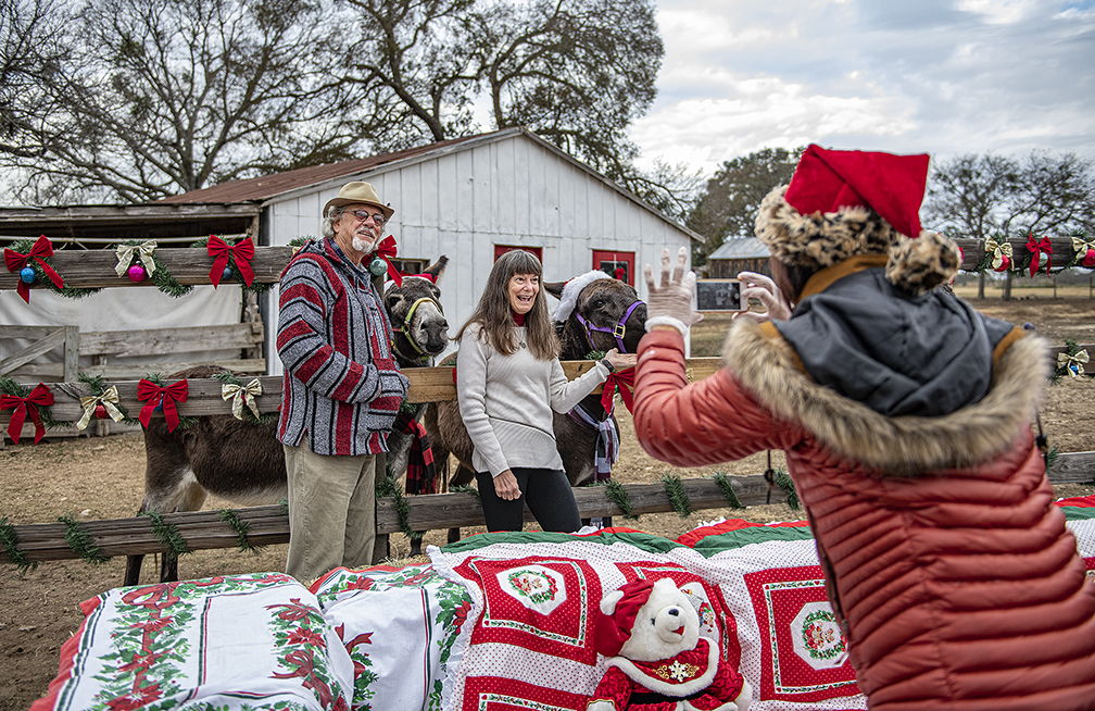 A few weeks ago I posted some photos of Pedro and Lil’ Bob, the resident donkeys at Berry Springs Park & Preserve in Georgetown. This morning, I got to see these guys gussied up in their finest holiday attire. Folks stopped by to get their photos taken with these guys, a fundraiser for Friends of Berry Springs. Volunteers worked tirelessly to keep them focused on the task at hand, but it was fun. I’m surprised Pedro and Lil’ Bob didn’t eat their Christmas finery!
