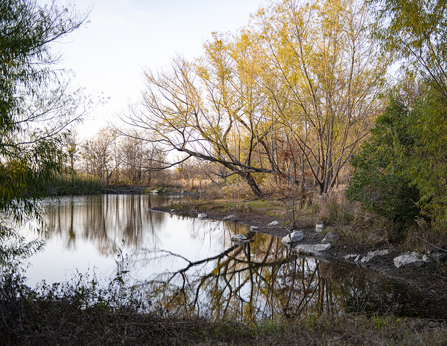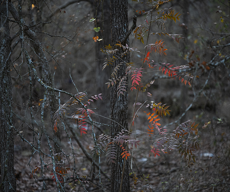 I think it was 2010 (or 2011) when I took photos at Our Lady of the Rosary Cemetery and Prayer Gardens in Georgetown. That was for an Austin American-Statesman story by a writer friend. At the time it was one of only two “green” cemeteries in the state. Those buried here were laid to rest without embalming, allowing the remains to take nature’s course a little sooner. Since that story, I’ve returned there many times. While it’s a cemetery, it’s also a place for quiet reflection as you visit the pond or walk the trails. It’s interesting to note that Our Lady is close enough to a busy toll road that you can almost always hear traffic noises. You somehow don’t care about the distraction. It’s just that pleasant. As autumn winds down, I wanted to visit again while a little color remained. These photos aren’t just about the color anyway.