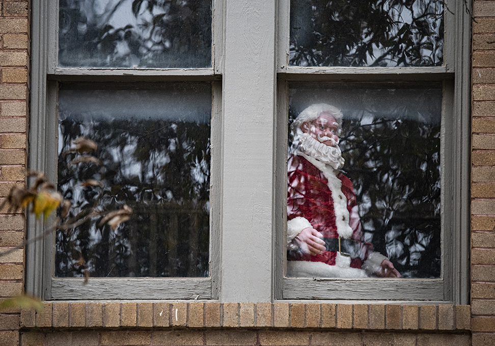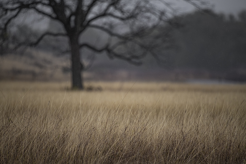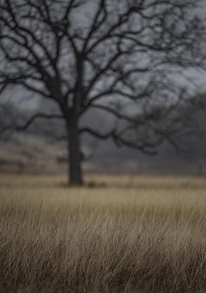 A few years ago, when driving through the community of Granger, a spooky sight caught my eye ….. Santa Claus staring back at me from the window of one of the town’s historic buildings. On closer inspection, it wasn’t real, but it got my attention. Now each year as Christmas approaches, I look in that window to see if old Saint Nick is still with us. And he is! Truthfully, I think you’d find his visage if you looked that way in June. It’s like seeing an old friend. The other photos are just prairie scenes that I like. The barn, photographed well past sundown on a cloudy evening, is surrounded by rich Blackland Prairie soil. One of these days I’m going to take a closeup photo of this dirt. You’ll see how the area got its name. The last image, presented in horizontal and vertical versions, continues a fascination with prairie grass, pretty abundant right now. Although the tree is elegant, I’m partial to the horizontal shot, where the focus is on that wonderful grass. It’s wispy.